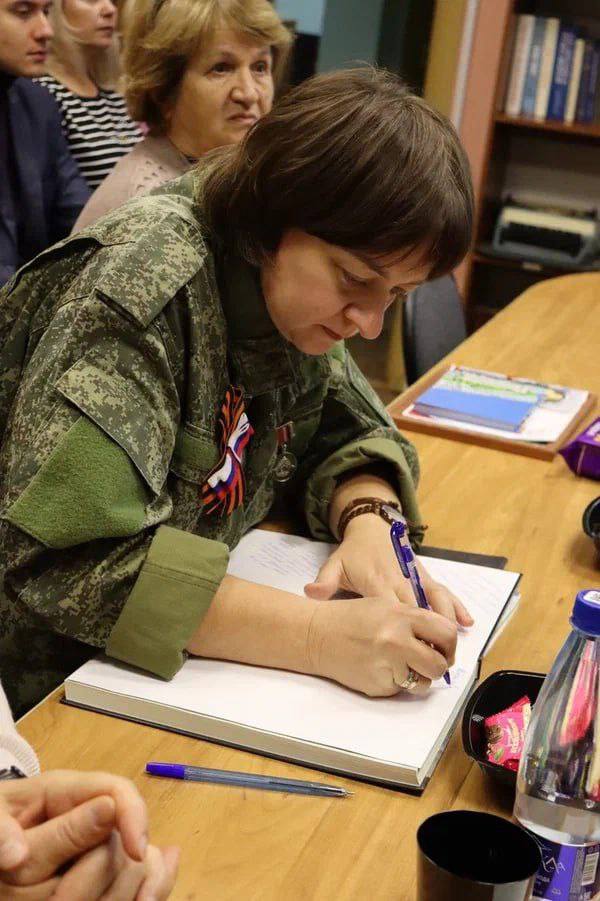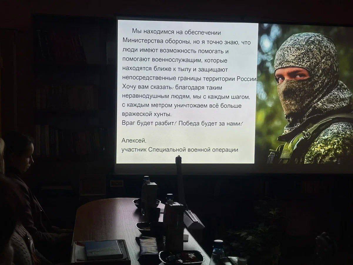 По поручению директора Брянской областной научной библиотеки им. Ф. И. Тютчева, в работе круглого стола приняли участие заместители директора Библиотеки О.Н. Горелая и А.А. Полянская. Провела круглый стол директор Государственного архива Брянской области Н. Н. Антошина. Надежда Николаевна рассказала о коллекции документов участников СВО, которую формируют сотрудники Архива. А. А. Полянская рассказала об Акции Библиотеки «Письмо Защитника Отечества». Алина Алексеевна говорила о том, как начиналась акция, кто ее участники, продемонстрировала 2 видеоролика с письмами. О.Н. Горелая в докладе «Быть воином - жить вечно. Поэма И.А. Швеца «Слеза на граните» и песнь Н.Ф. Иванова «Саур-Могила» говорила о точках соприкосновения в произведениях писателей-патриотов.