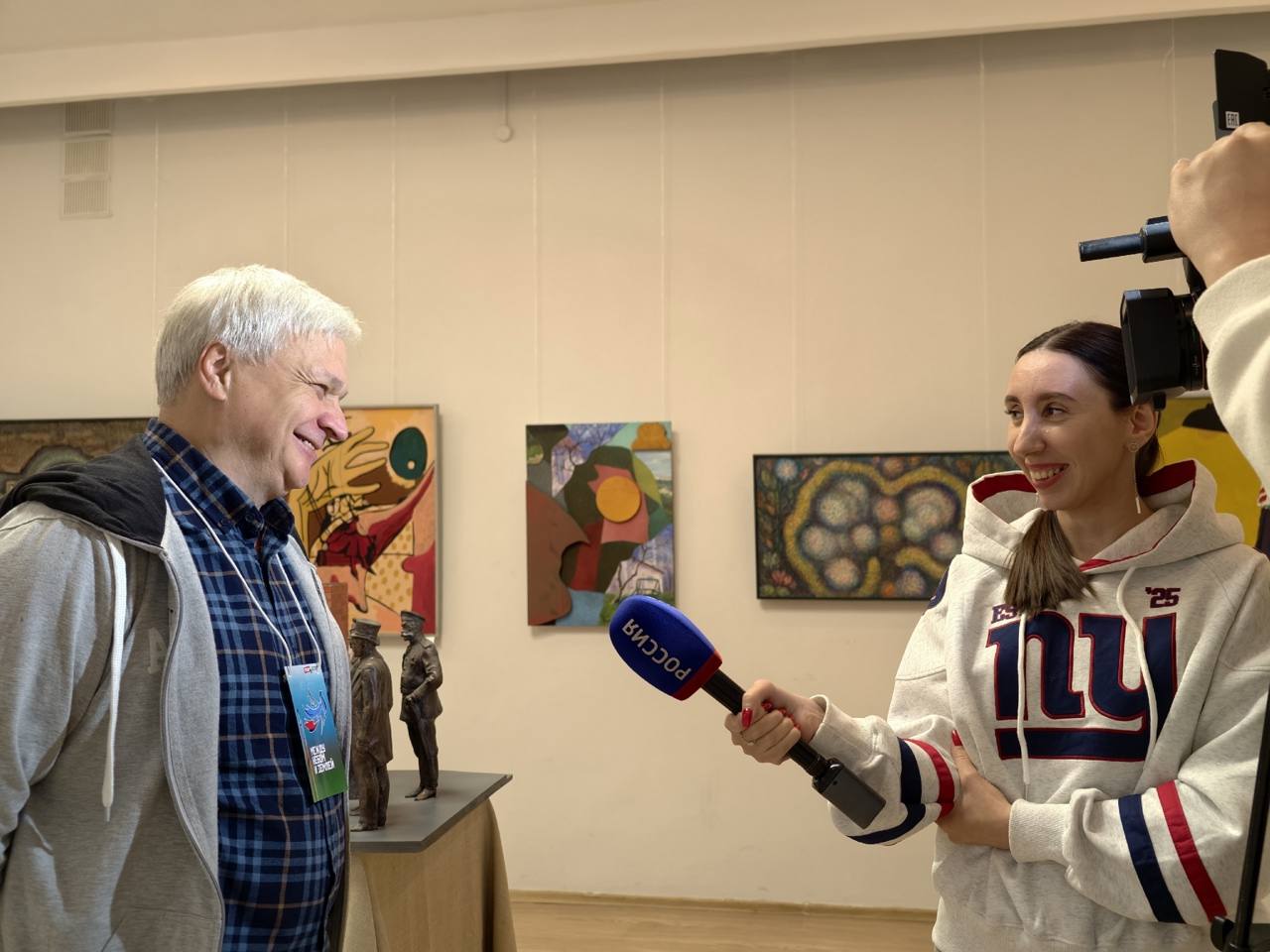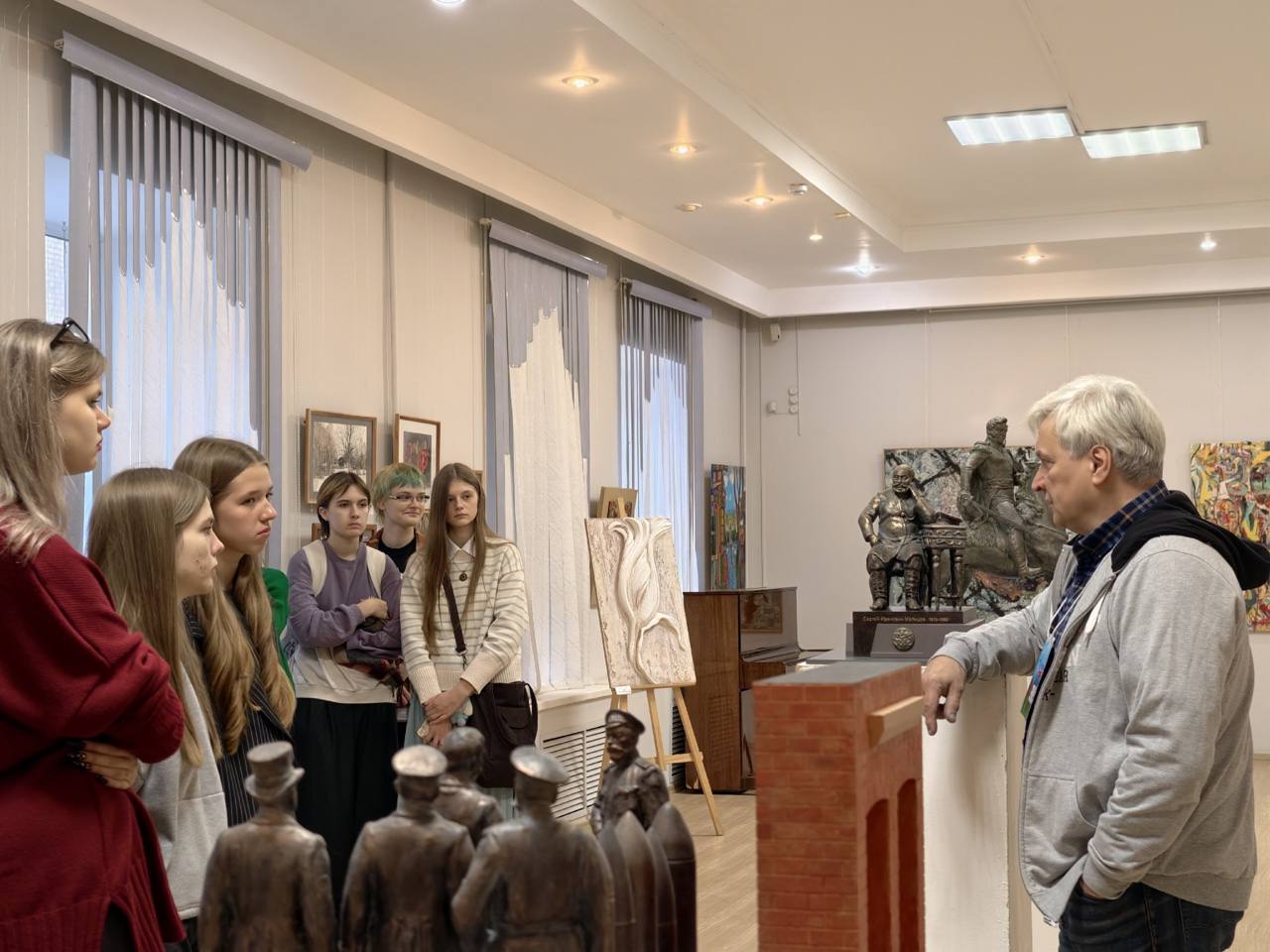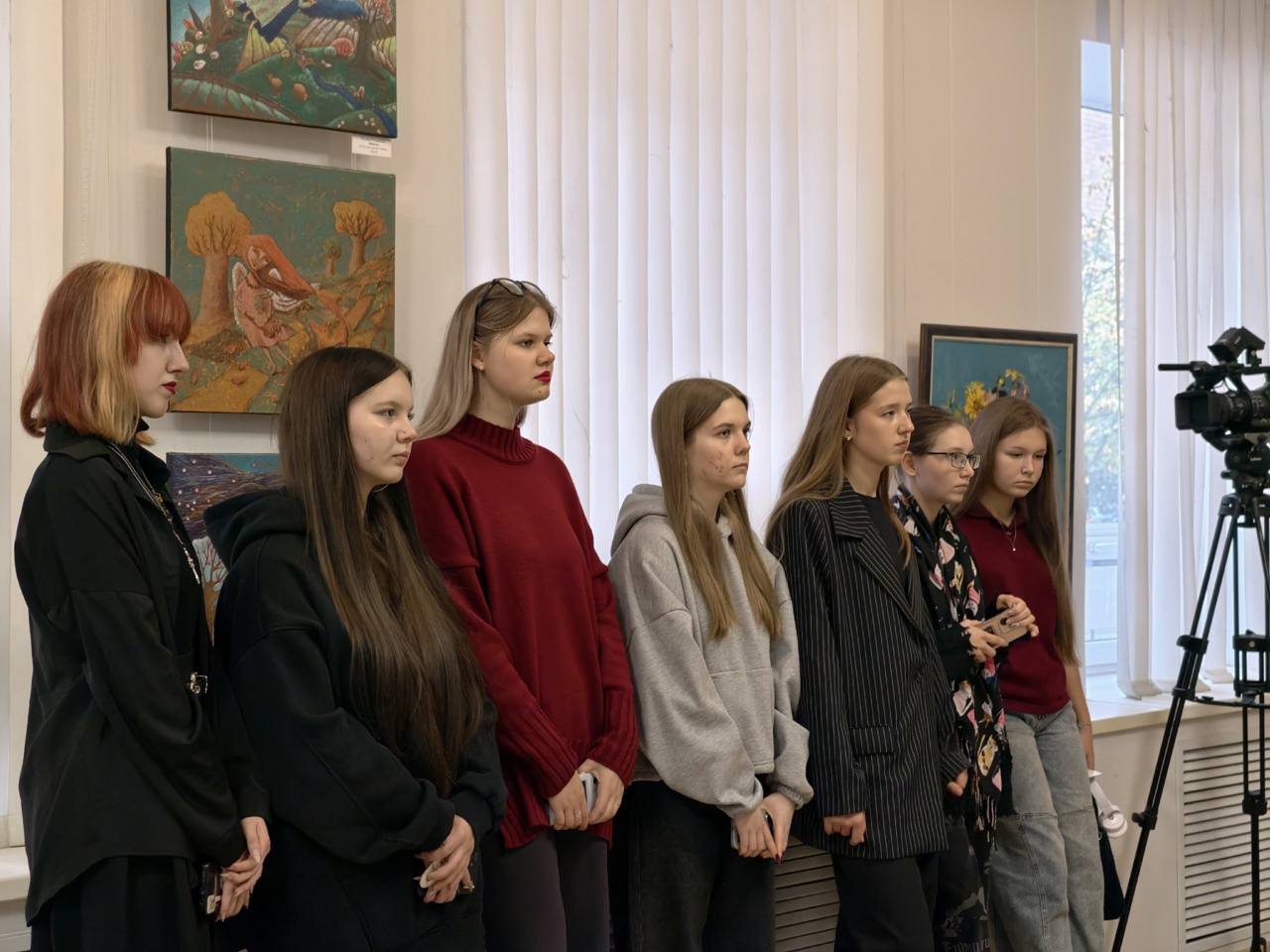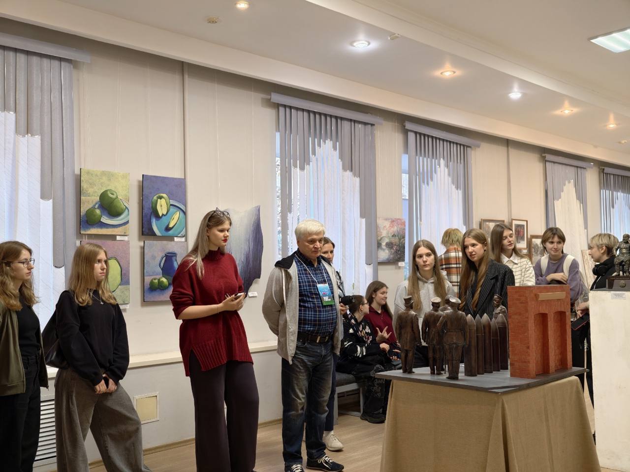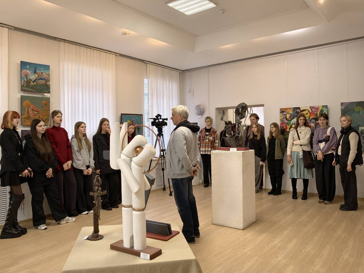 Сегодня в Городском выставочном зале в рамках выставки «Между небом и землёй» состоялась творческая встреча председателя Творческого союза художников Александра Александровича Ромашевского и студентов Брянского строительного колледжа.