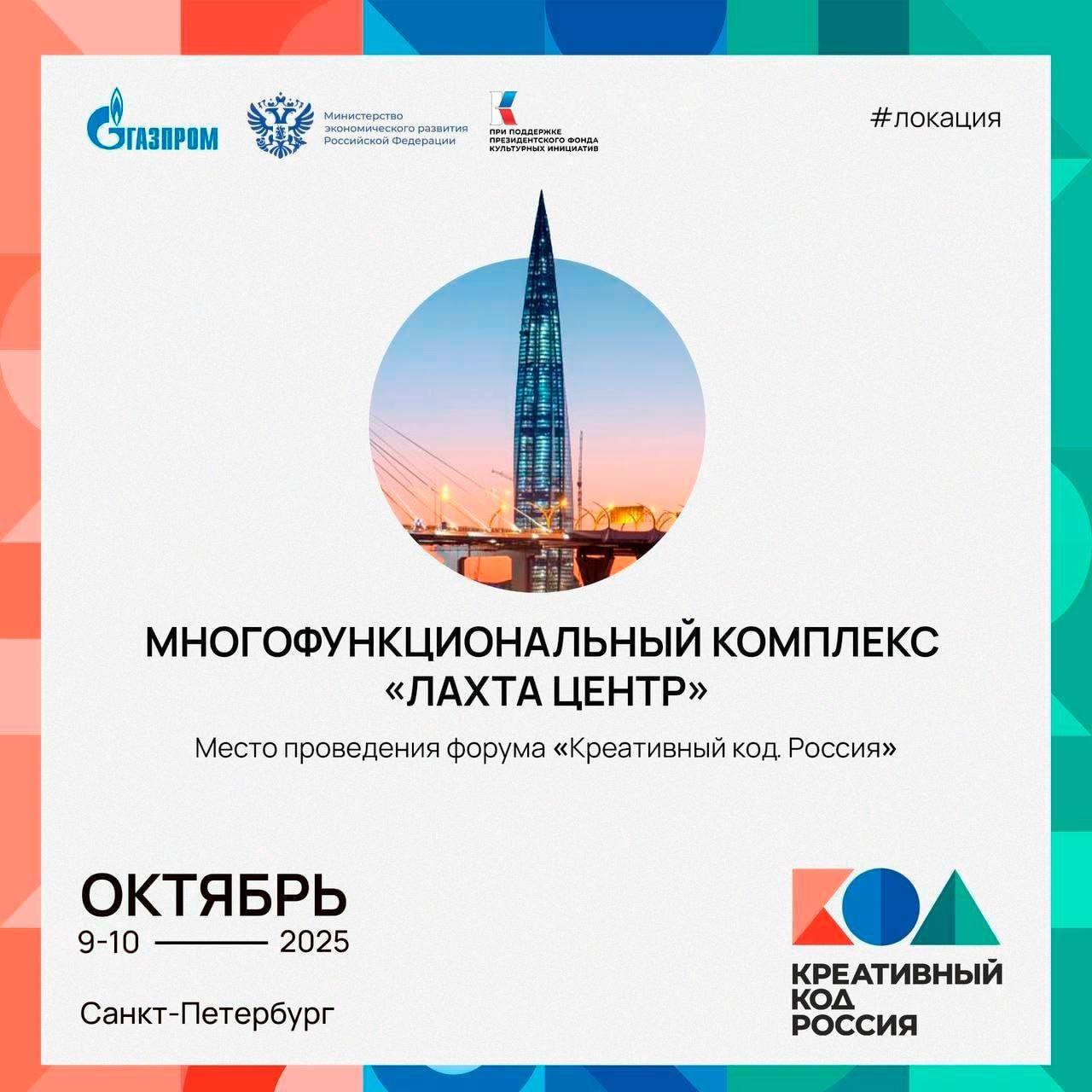 9-10 октября 2025 г. в Санкт-Петербурге пройдет официальный форум Минэкономразвития РФ «Креативный код. Россия», организованный совместно с ПАО «Газпром» при поддержке Президентского фонда культурных инициатив.