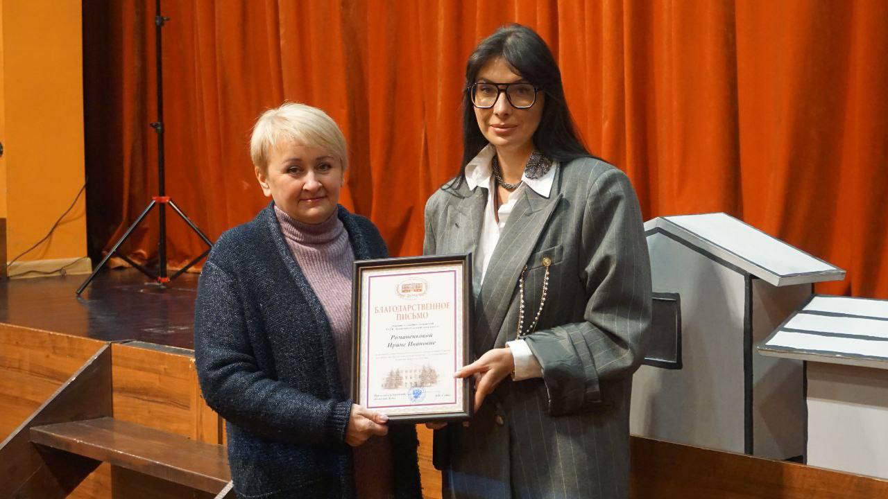 Депутат Брянской областной Думы, заместитель директора театра Светлана Абросимова поздравила коллег с профессиональным праздником и вручила благодарственные письма областной Думы.