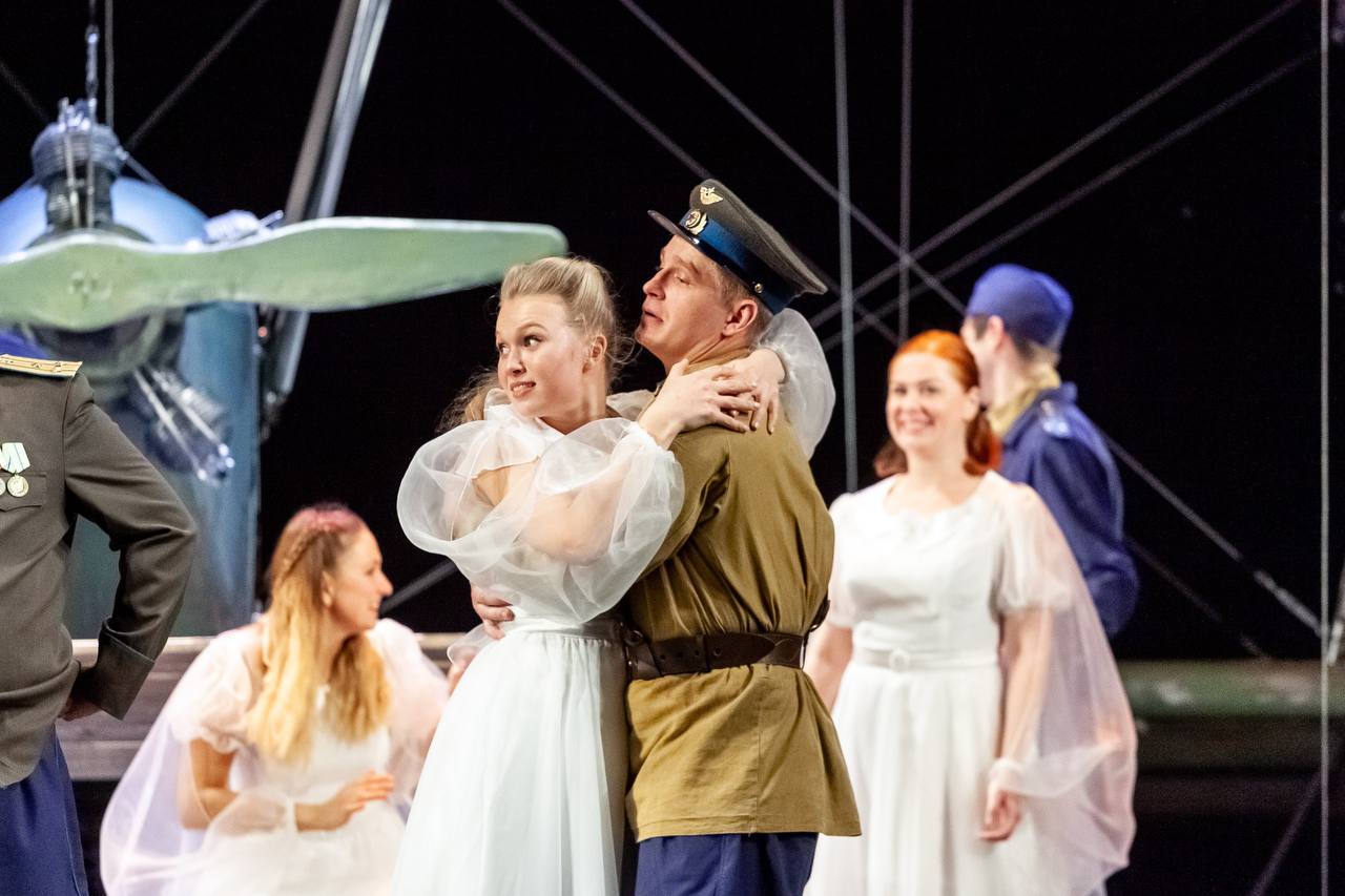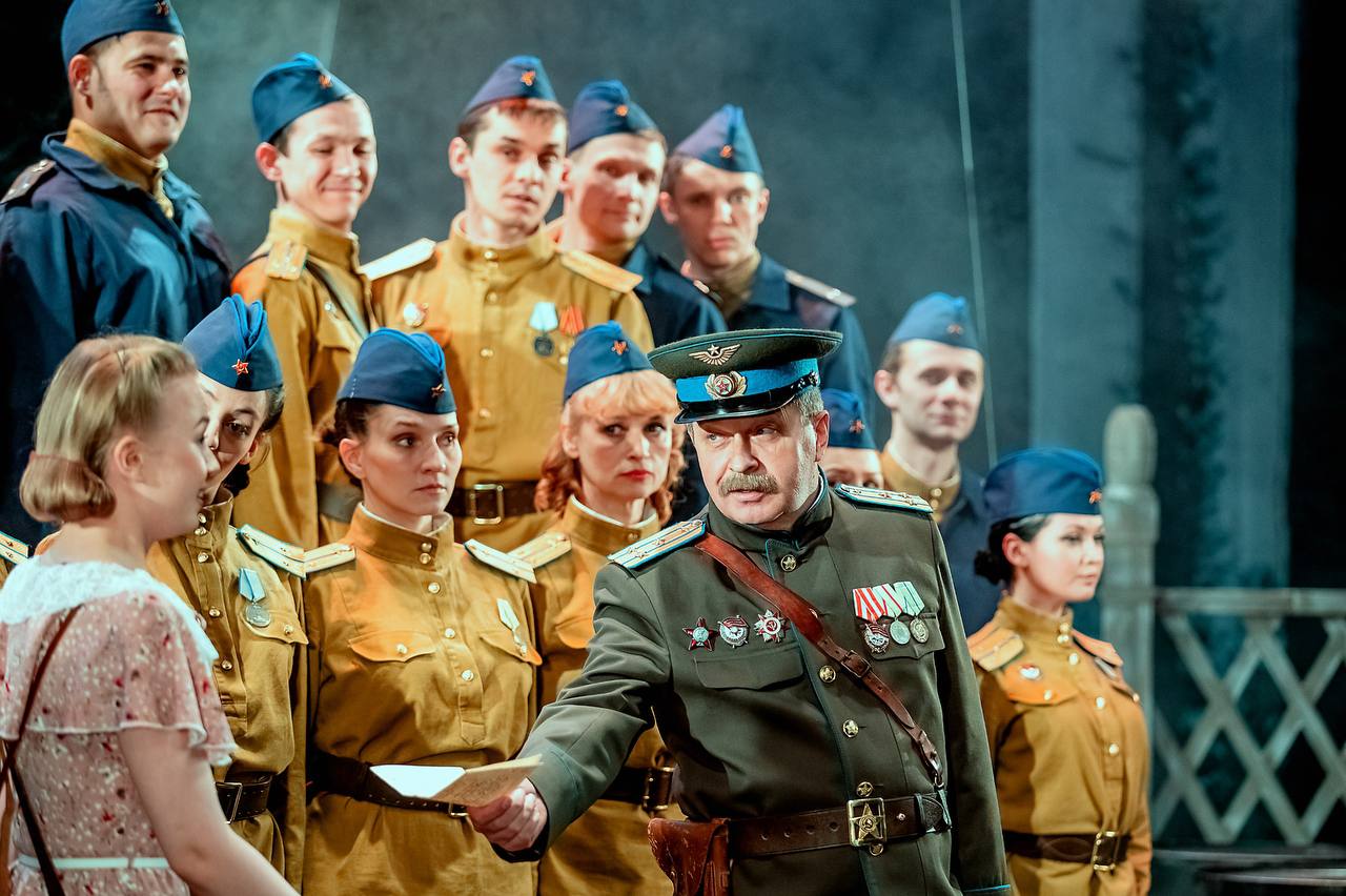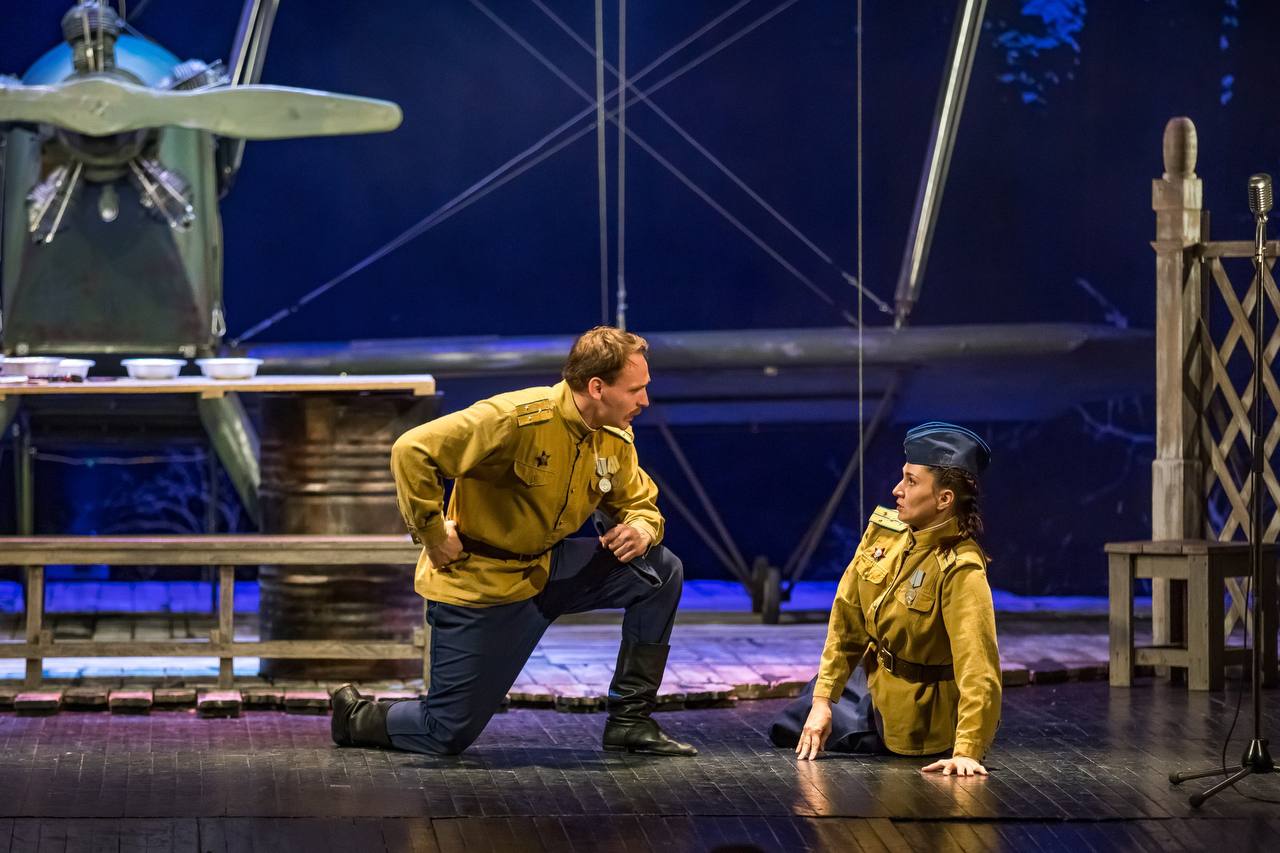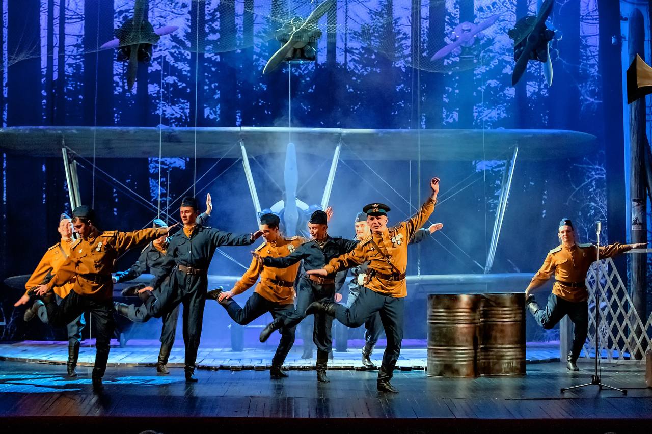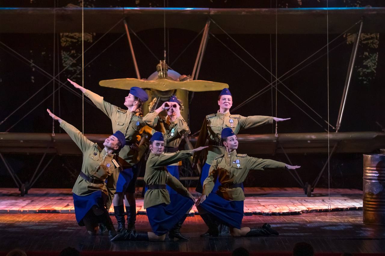 Три боевых летчика дают друг другу клятву — не влюбляться до конца войны. Но прекрасные глаза офицеров из женской летной эскадрильи — оружие, пострашней вражеских снарядов. И сердца бравых друзей постепенно сдают свои позиции. Самые лучшие человеческие чувства и качества — беззаветная любовь к Родине, мужество, отвага, бесстрашие и удивительное чувство юмора, заряд радости и позитива — на сцене театра Чехова подарят незабываемые эмоции и отличное настроение.