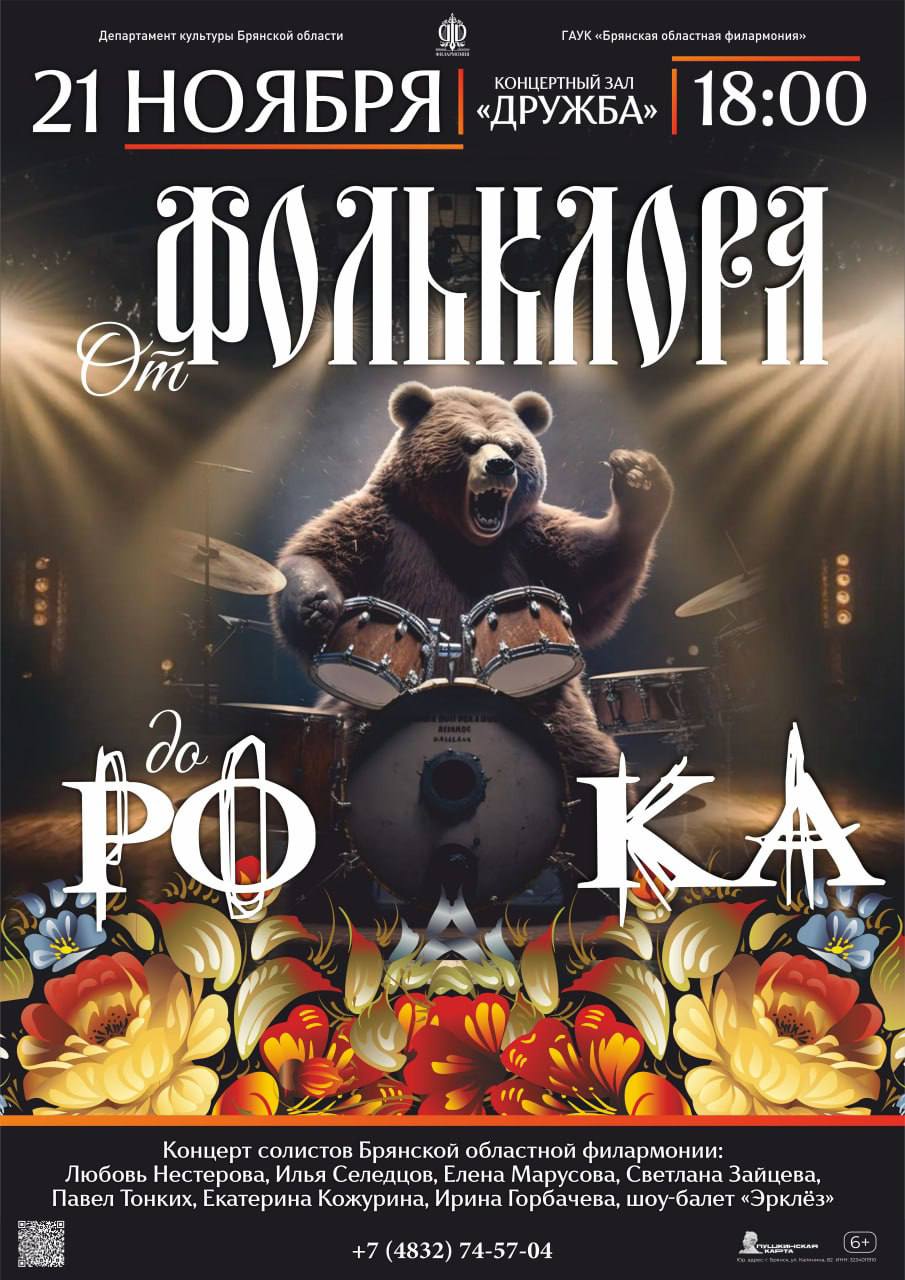 21 ноября в 18.00 в концертном зале «Дружба» Брянская областная филармония представит программу «От фольклора до рока».