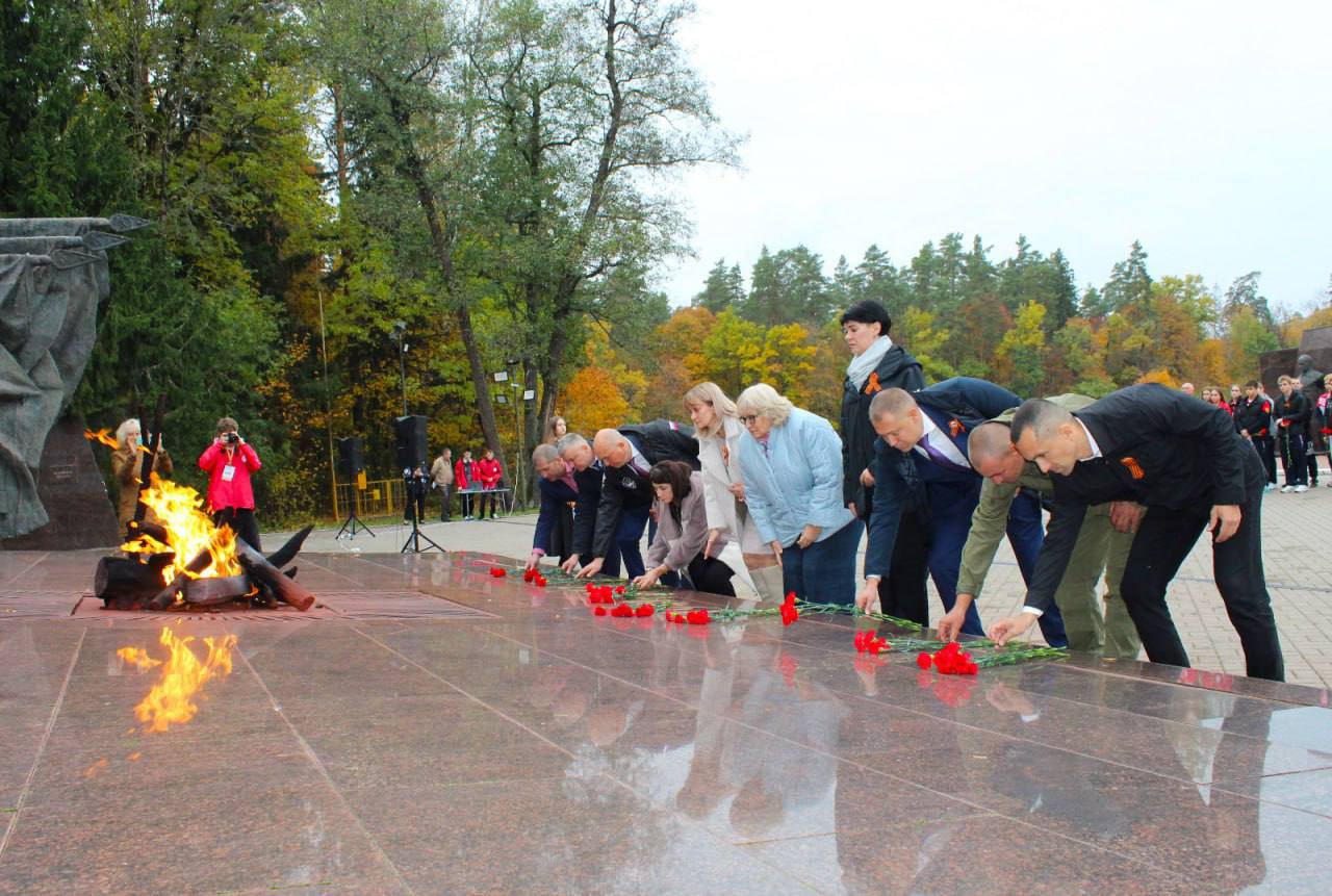 Гости почтили память погибших партизан и подпольщиков в годы Великой Отечественной войны и возложили цветы к Вечному огню.
