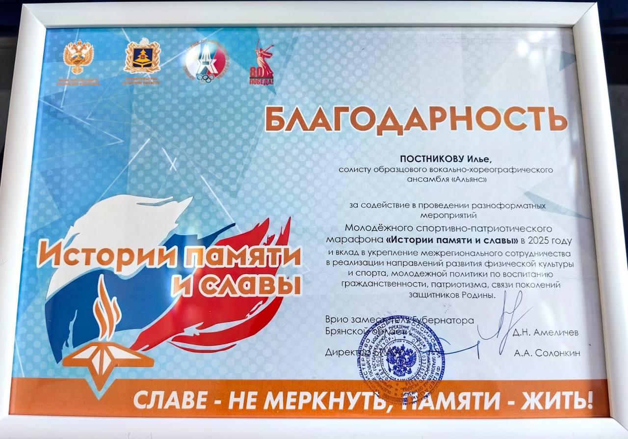 В конфернец-зале Дворца единоборств имени Артема Осипенко прошла церемония торжественного открытия молодежного спортивно-патриотического марафона "Истории памяти и славы", проходящего при поддержке министерства спорта Российской Федерации и Правительства Брянской области по инициативе Брянского государственного училища (колледжа) олимпийского резерва.