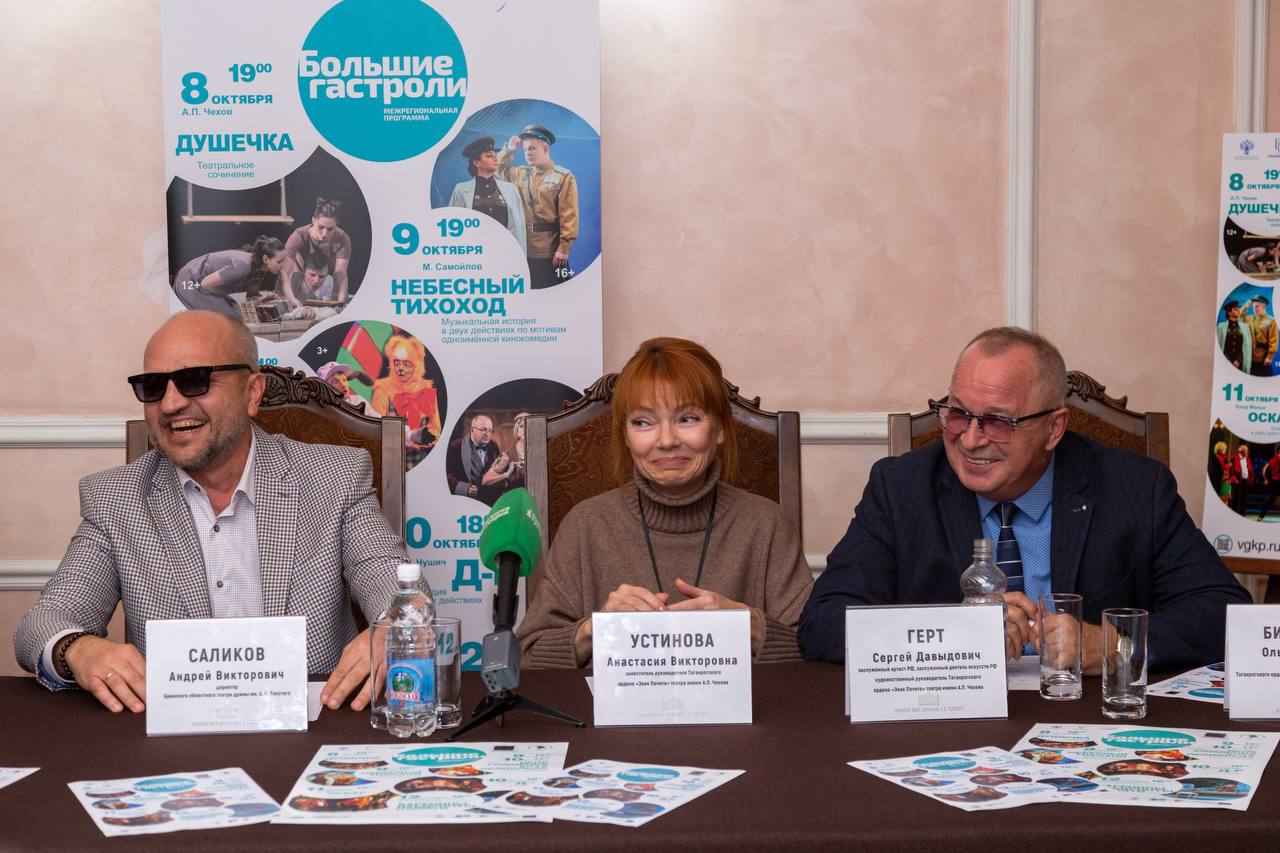 8 октября в гостиной Брянского театра драмы им. А.К. Толстого состоялась пресс-конференция посвящённая "Большим гастролям" Таганрогского ордена «Знак Почета» театра имени А.П. Чехова в Брянске, организованные ФГБУКРОСКОНЦЕРТ согласно Всероссийскому гастрольно-концертному плану Министерства культуры Российской Федерации.