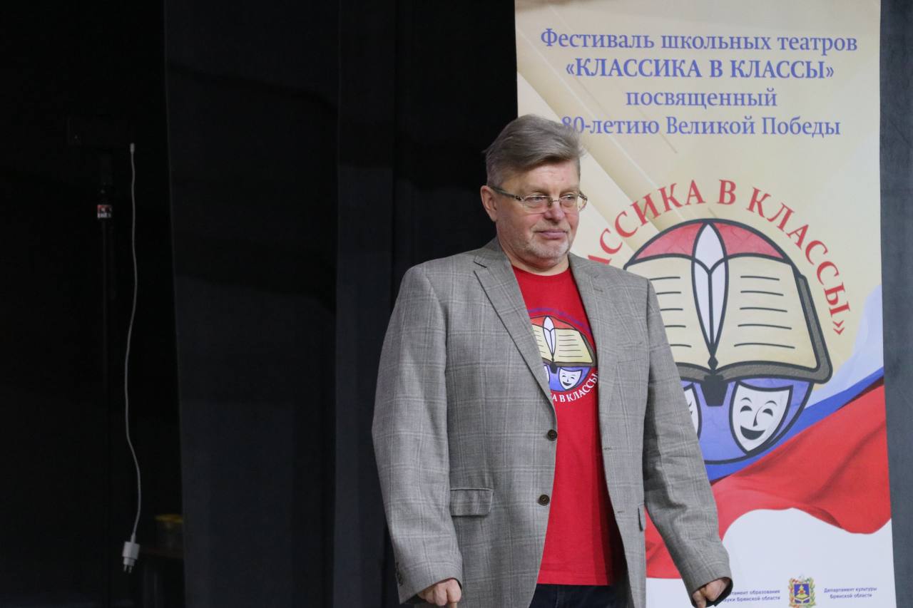 8 октября вБрянске врамках образовательной программы проекта "Фестиваль школьных театров "Классика в классы", посвященный 80-летию Великой Победы" в Губернаторском Дворце детского и юношеского творчества им. Гагарина для руководителей школьных театров из районов Брянской области ярко и незабываемо прошел мастер-класс магистра театральной педагогики, артиста театра и кино Валерия Кукушкина (г. Москва).