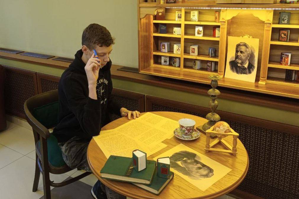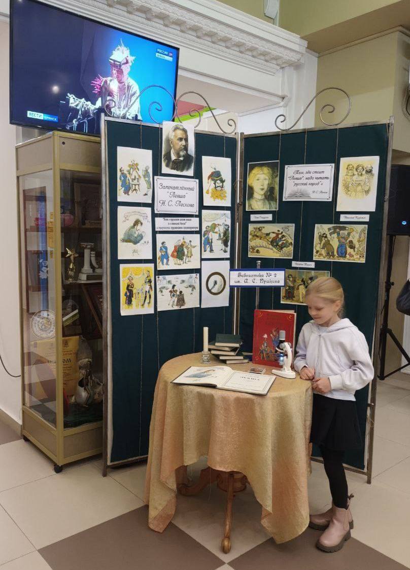 В фойе наши гости погрузились в творчество Лескова. Сотрудники городской библиотеки № 2 им. А.С. Пушкина подготовили тематическую выставку.