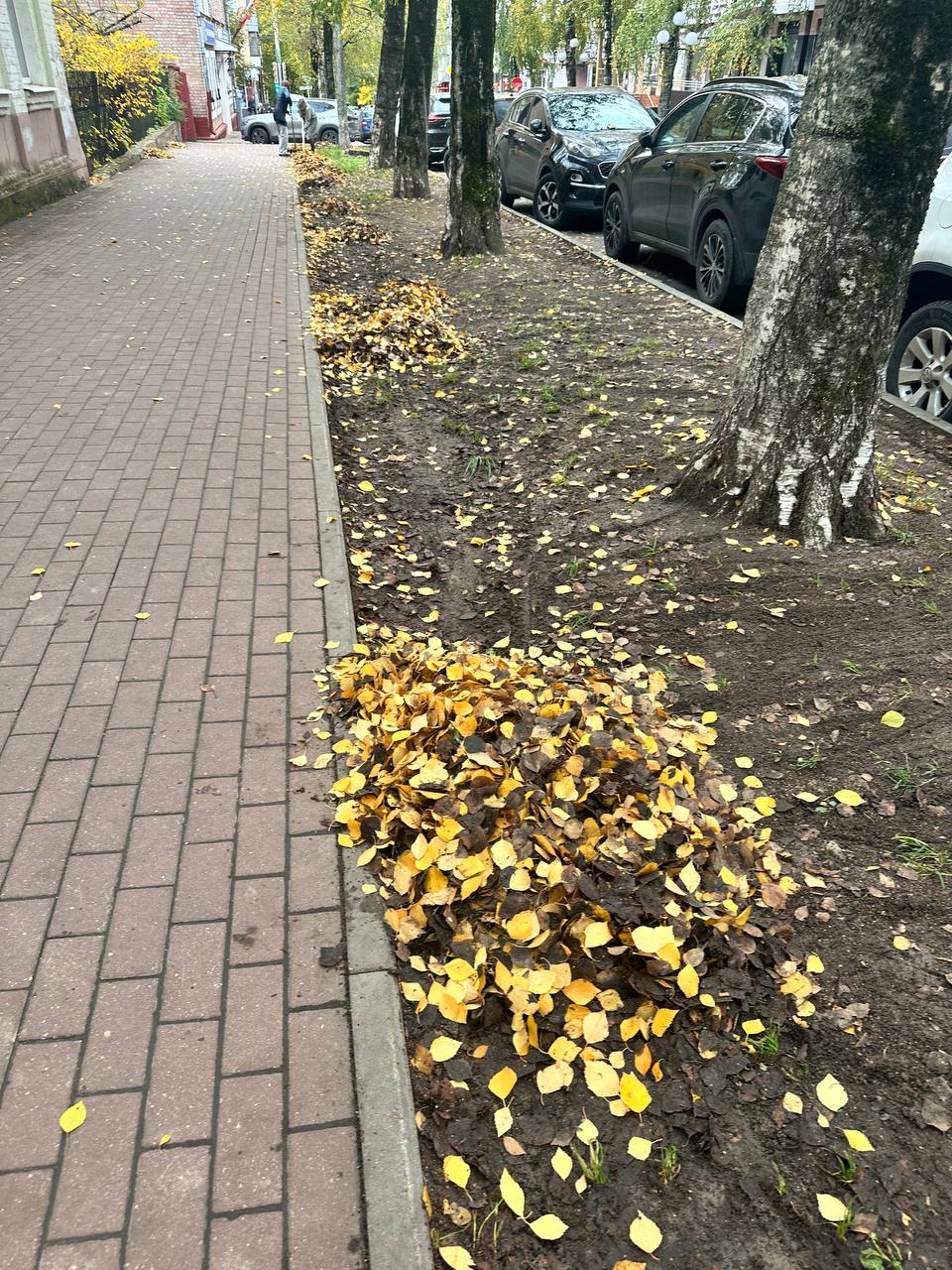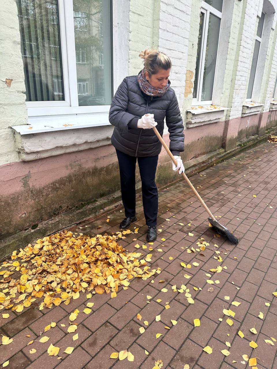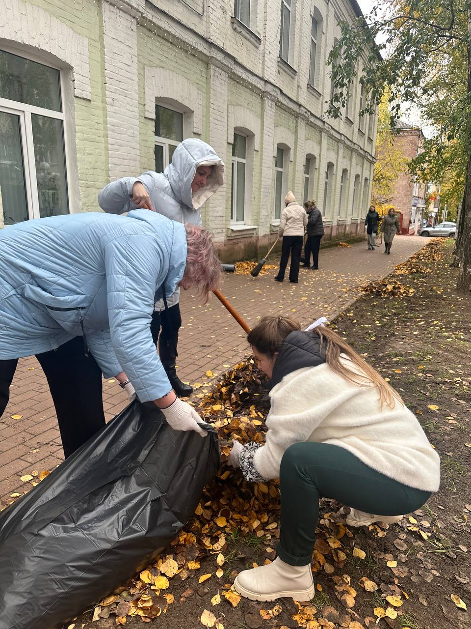 Коллективы управления культуры Брянской городской администрации и МБУ «Служба комплексного обслуживания зданий и территорий муниципальных учреждений культуры города Брянска» убрали от опавшей листвы прилегающую территорию по улице Октябрьской.