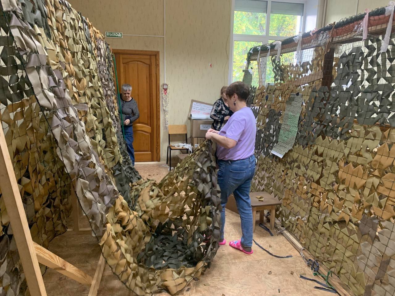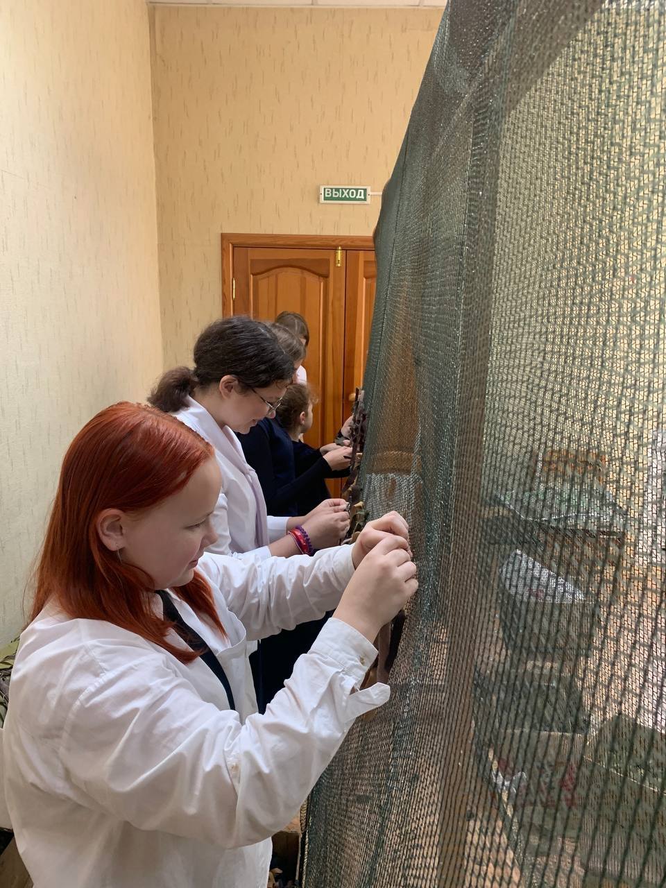 Сегодня в гостях у клуба были учащиеся школы №34, которых познакомили с работой клуба и пригласили поучаствовать в изготовлении маскировочных сетей .