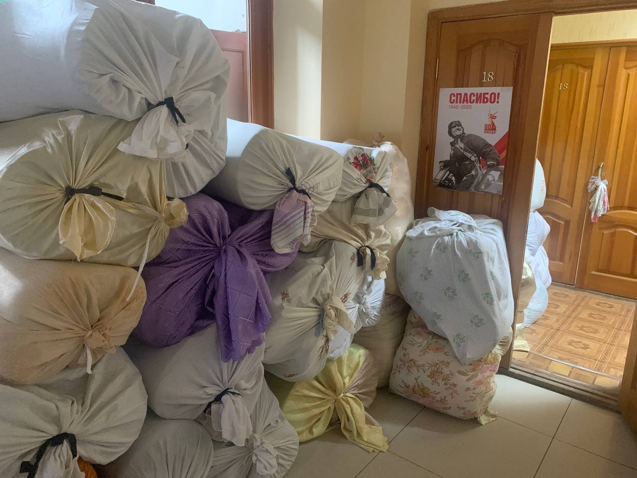 Так же состоялась отгрузка большой партии матрацев и подушек, которые были изготовлены волонтёрами клуба.