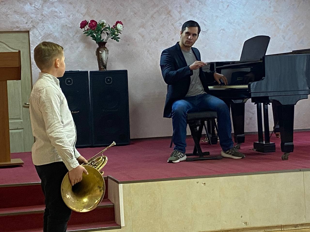 Малахов О.И. провел мастер-класс на тему « Работа и артикуляция языка при игре на медно-духовых инструментах»(валторна)с обучающимся 3 класса ДПОП « Духовые и ударные инструменты» Полятковым Давидом.