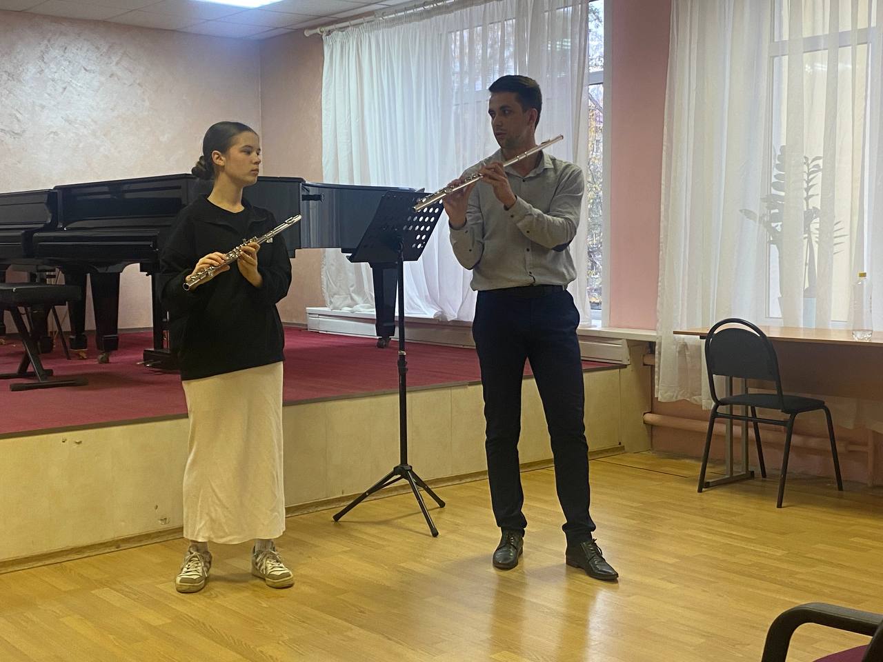 Акимушкин К.А. провел открытый урок на тему «Работа над новым музыкальным материалом и техническими трудностями на примере произведения» ( флейта)