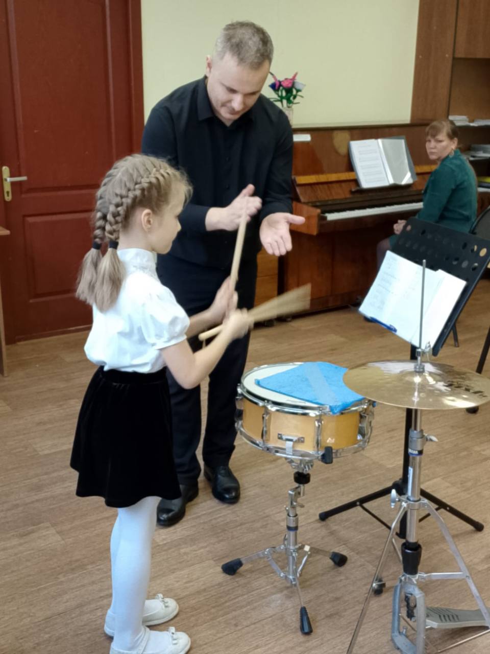 Золотенков А.Н. провел открытый урок на тему « Развитие чувства ритма на начальном этапе обучения в классе ударных инструментов»( малый барабан , ксилофон) с обучающейся 1 класса ДПОП «Духовые и ударные инструменты»Секселевой Софией.