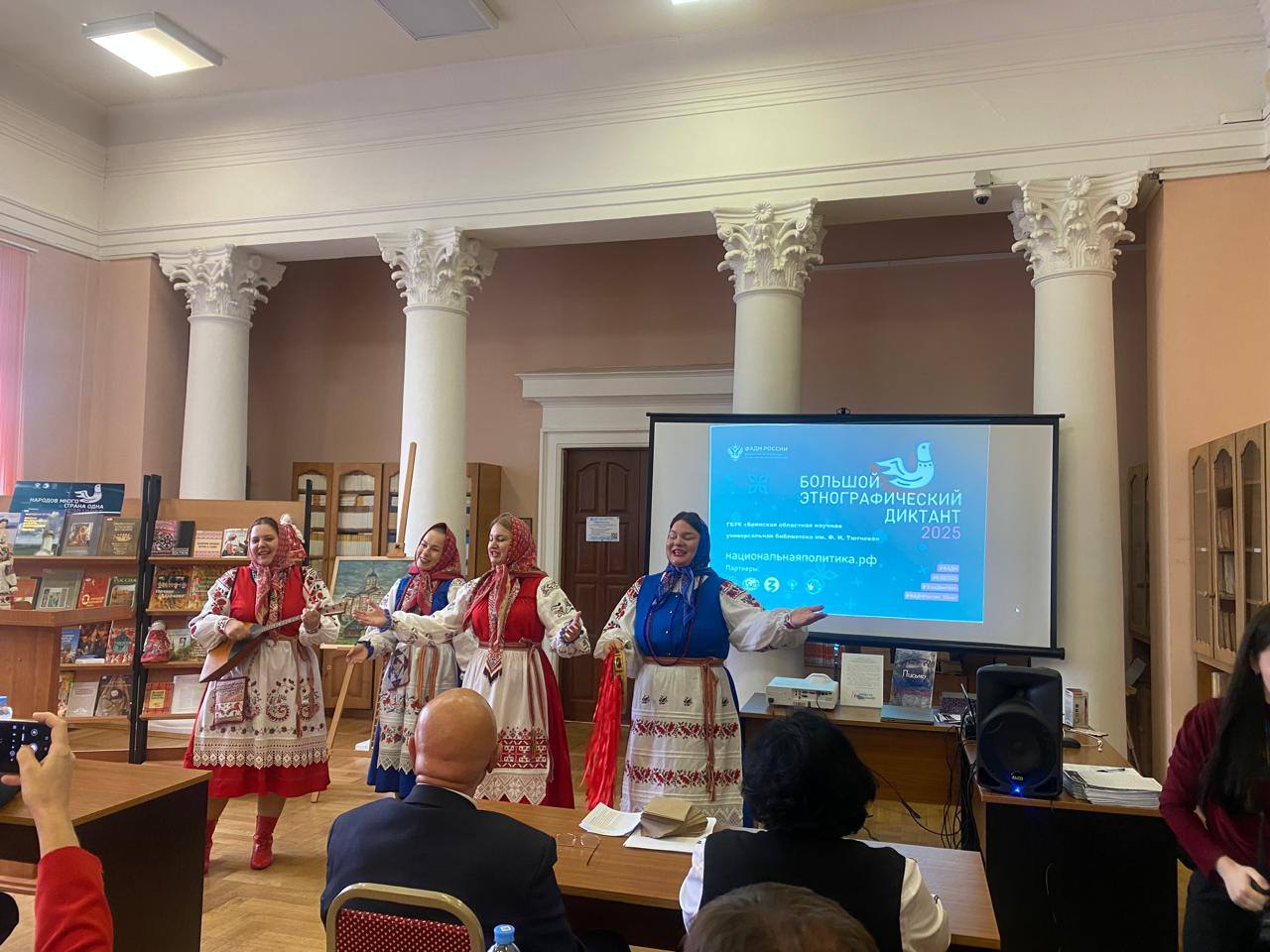Акция «Ночь искусств» стартовала в 12.00 с проведения Всероссийской просветительской акции «Большой этнографический диктант», где каждый смог проверить свои знания о народах России. На мероприятии присутствовали представители органов власти, студенты, работники сферы культуры, жители и гости нашего региона.