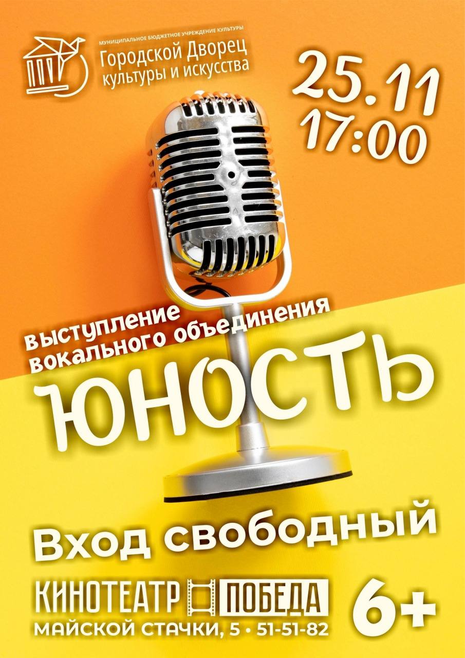 Городской Дворец культуры и искусства приглашает зрителей на концертную программу вокального объединения "Юность".