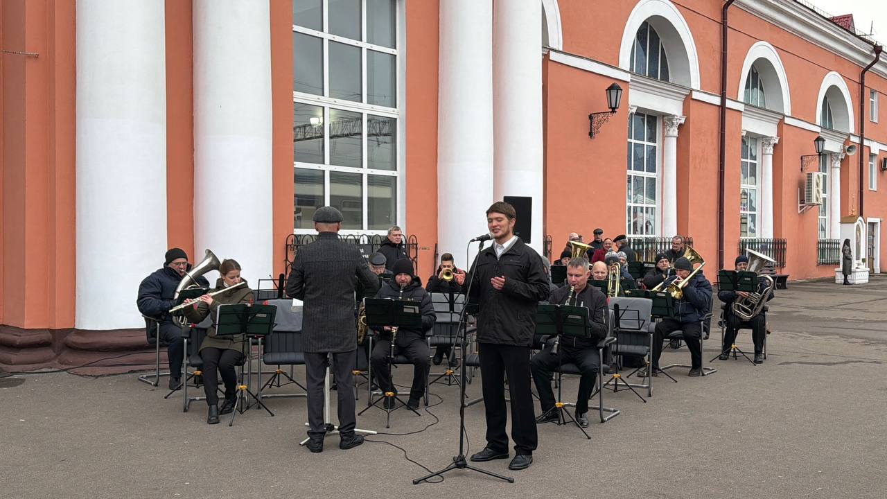 Церемония открытия и торжественное отправление поезда проходило под звуки Брянского городского духового оркестра