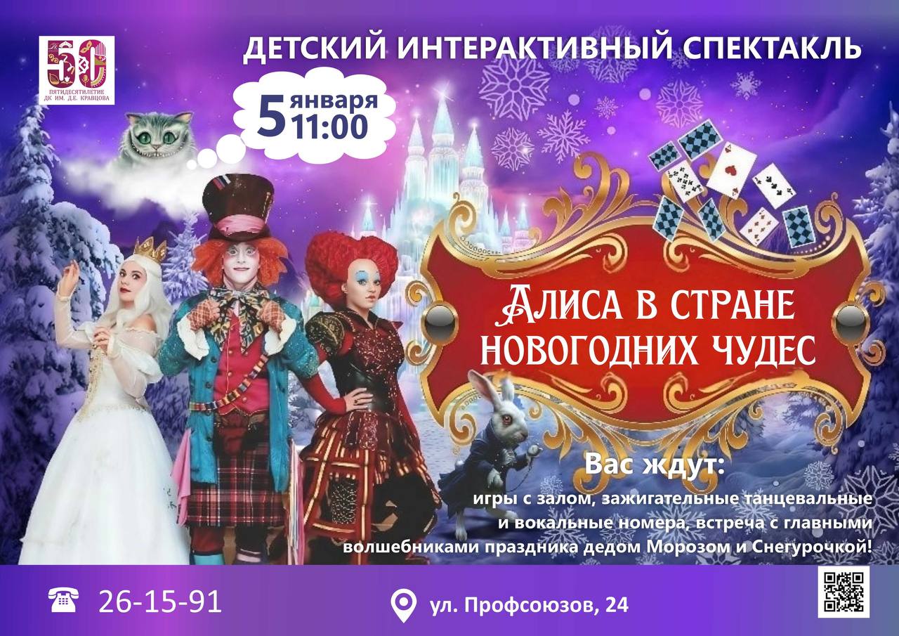 5 января в 11.00 Городской Дворец культуры им. Дмитрия Кравцова приглашает на интерактивный спектакль "Алиса в стране Новогодних чудес"!
