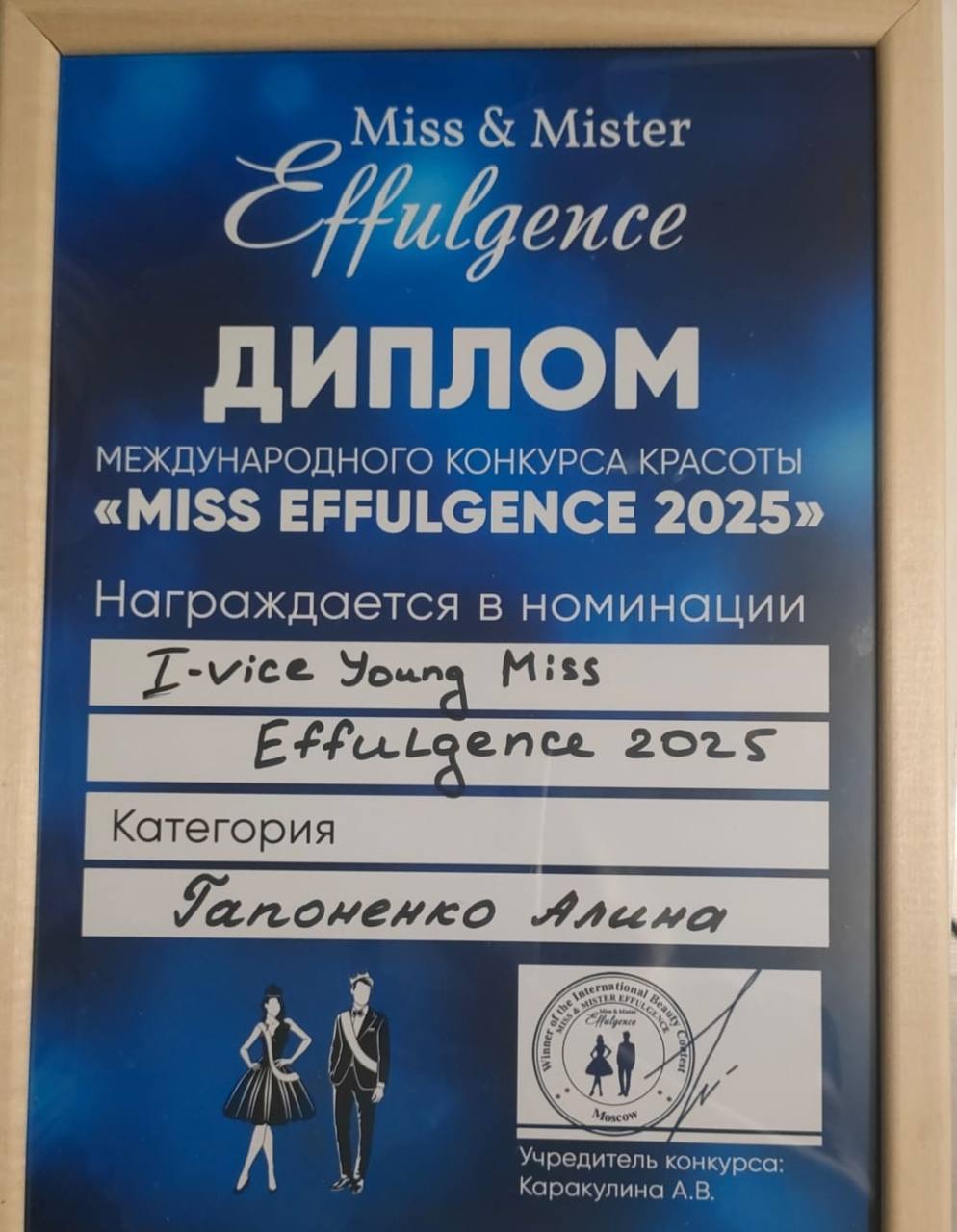 Поздравляем воспитанниц ОБРАЗЦОВОГО ТЕАТРА МОДЫ "МОДА КАК ИСКУССТВО" Городского Дворца культуры им.Д.Е.Кравцова ГАПОНЕНКО АЛИНУ И КОРОБИНУ СОФИЮ с победами НА МЕЖДУНАРОДНОМ КОНКУРСЕ «YOUNG MISS EFFULGENCE 2025" (22-23.11.25, г.Москва):