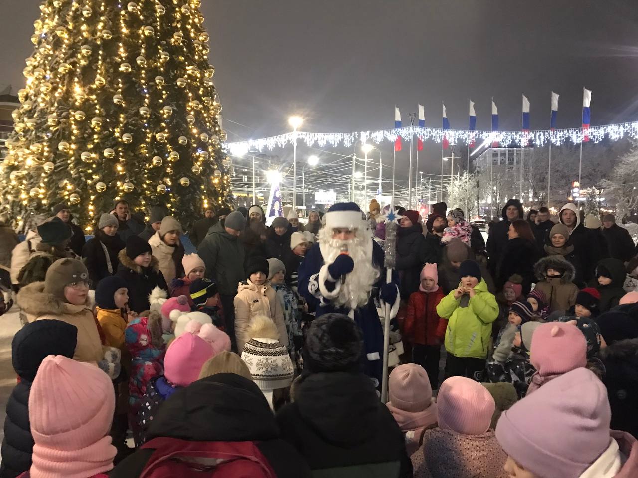 Дед Мороз, Снегурочка и Кикимора продолжают путешествовать по паркам Брянска. В минувшее воскресенье сказочные персонажи встретились с детворой и взрослыми в Майском парке и в ЦПКиО имени 1000-летия Брянска, рядом с одной из самых красивых ёлок нашего города.