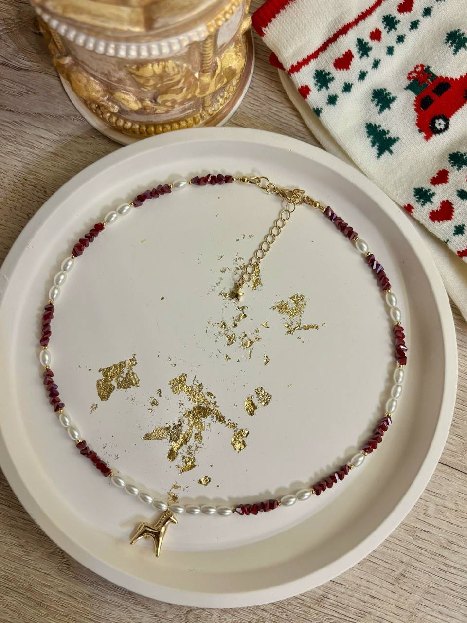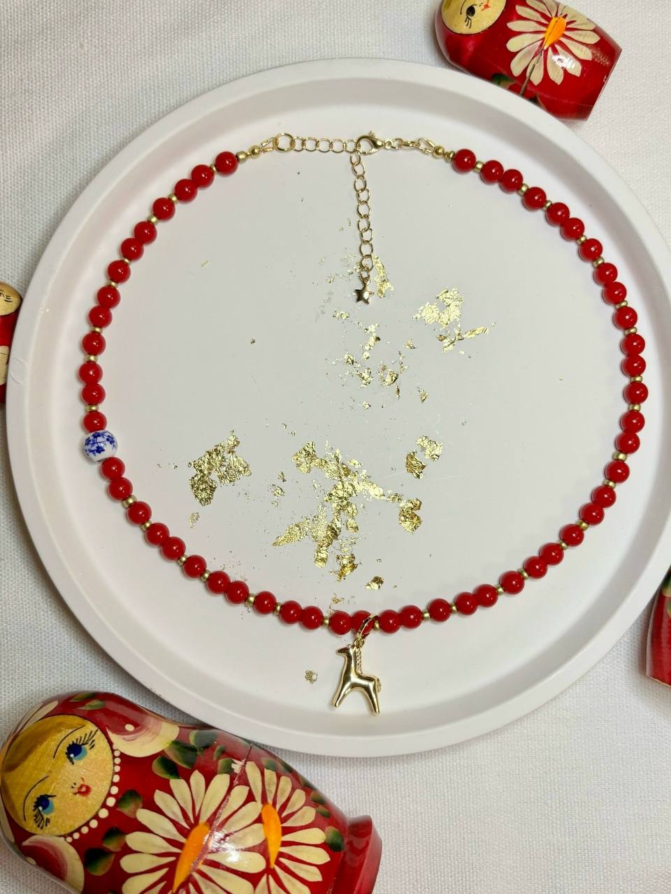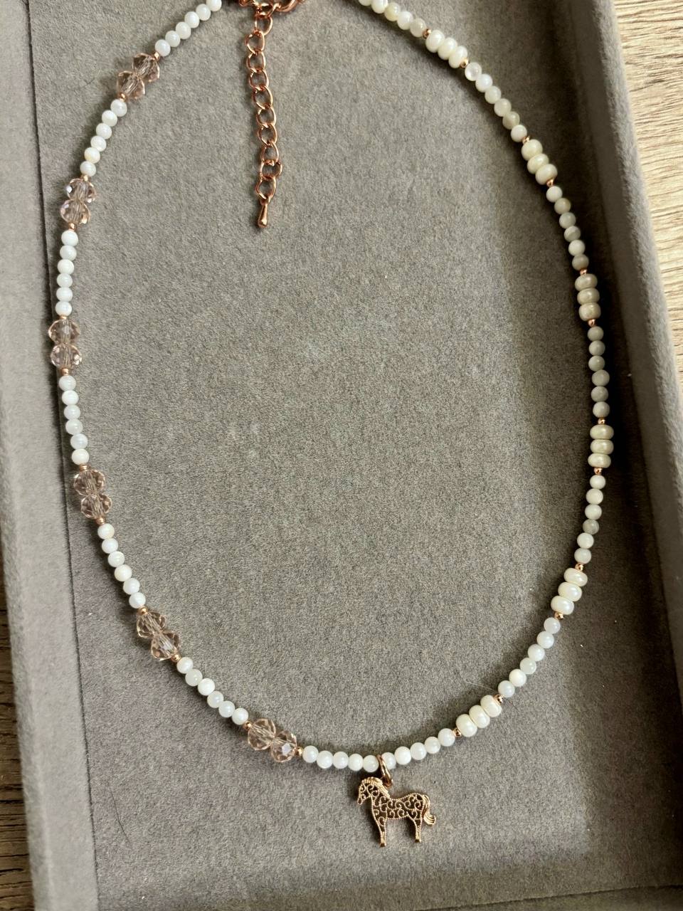 Изготовим чокер с позолоченной подвеской- лошадкой (в двух вариантах), каждый участник выберет и скомбинирует понравившиеся бусины.