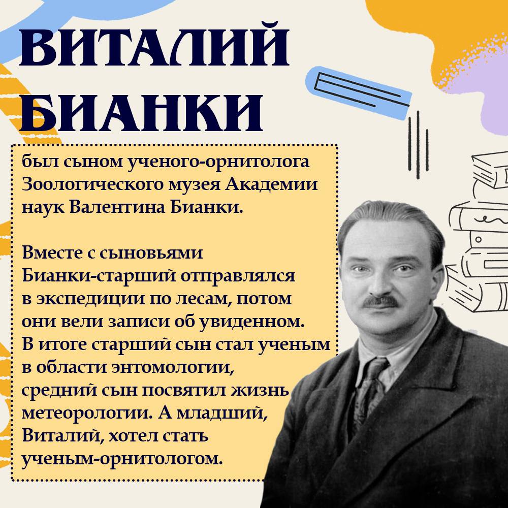 11 февраля 1894 года родился писатель Виталий Бианки. На его произведениях о лесных обитателях выросло не одно поколение советских детей. Книги писателя-натуралиста учат понимать природу, воспитывают любовь и уважение к окружающему миру.