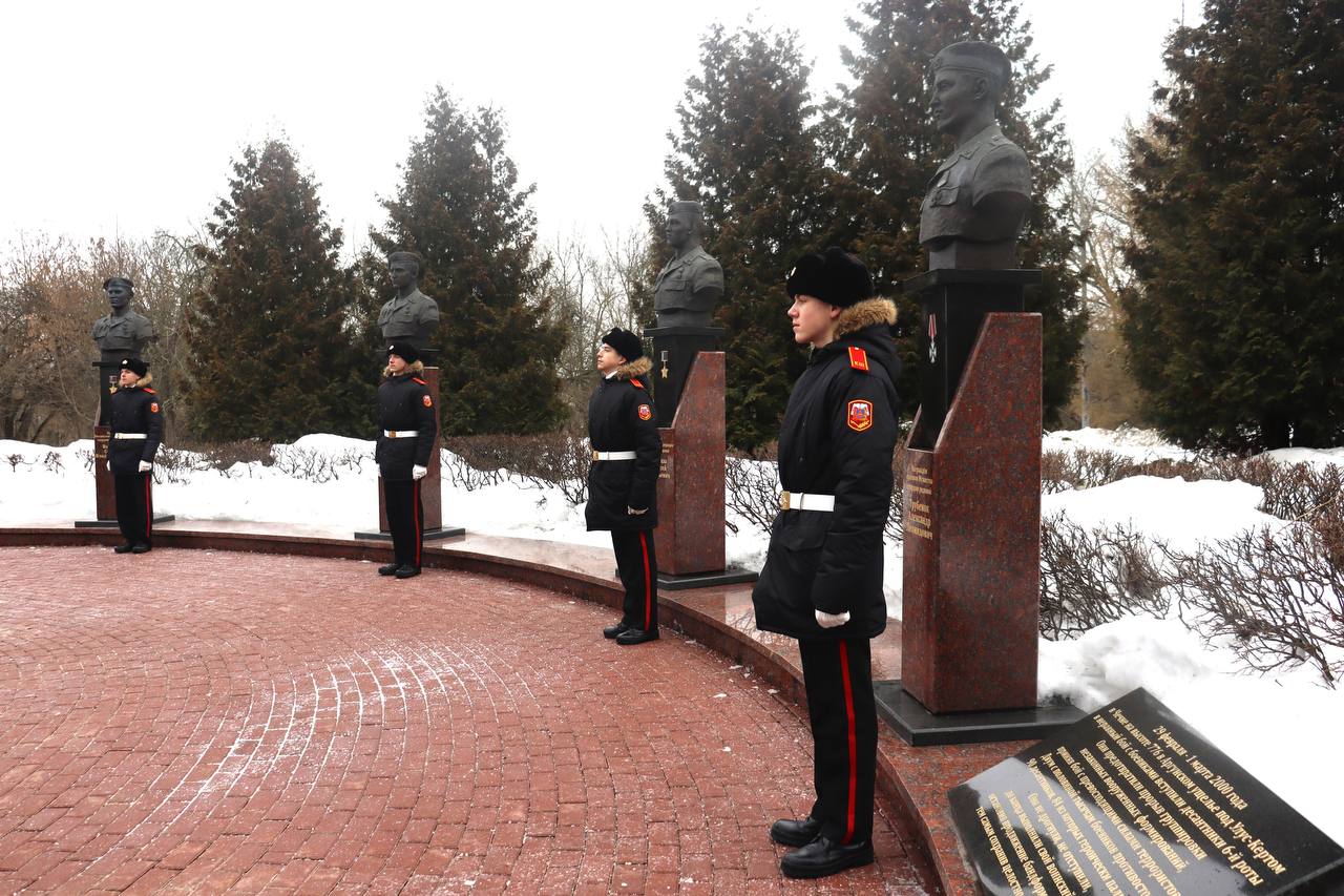 Память российских военнослужащих почтили минутой молчания. К мемориалу Круговая оборона возложили цветы.
