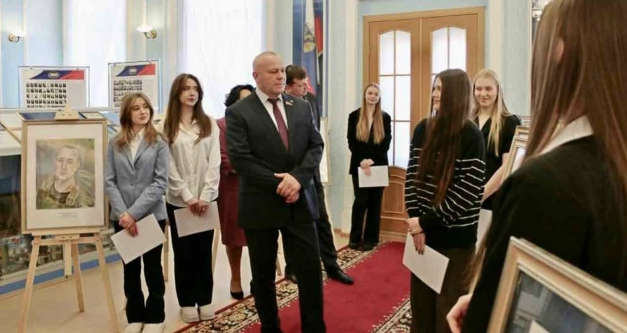 В преддверии Дня защитника Отечества в Брянской областной Думе начала работу патриотическая выставка «Герои нашего времени», на которой представлены портреты участников специальной военной операции, написанные ученицами 4–5 классов Детской школы искусств №1 имени Т.П. Николаевой по фотографиям, предоставленным региональным Комитетом семей воинов Отечества.