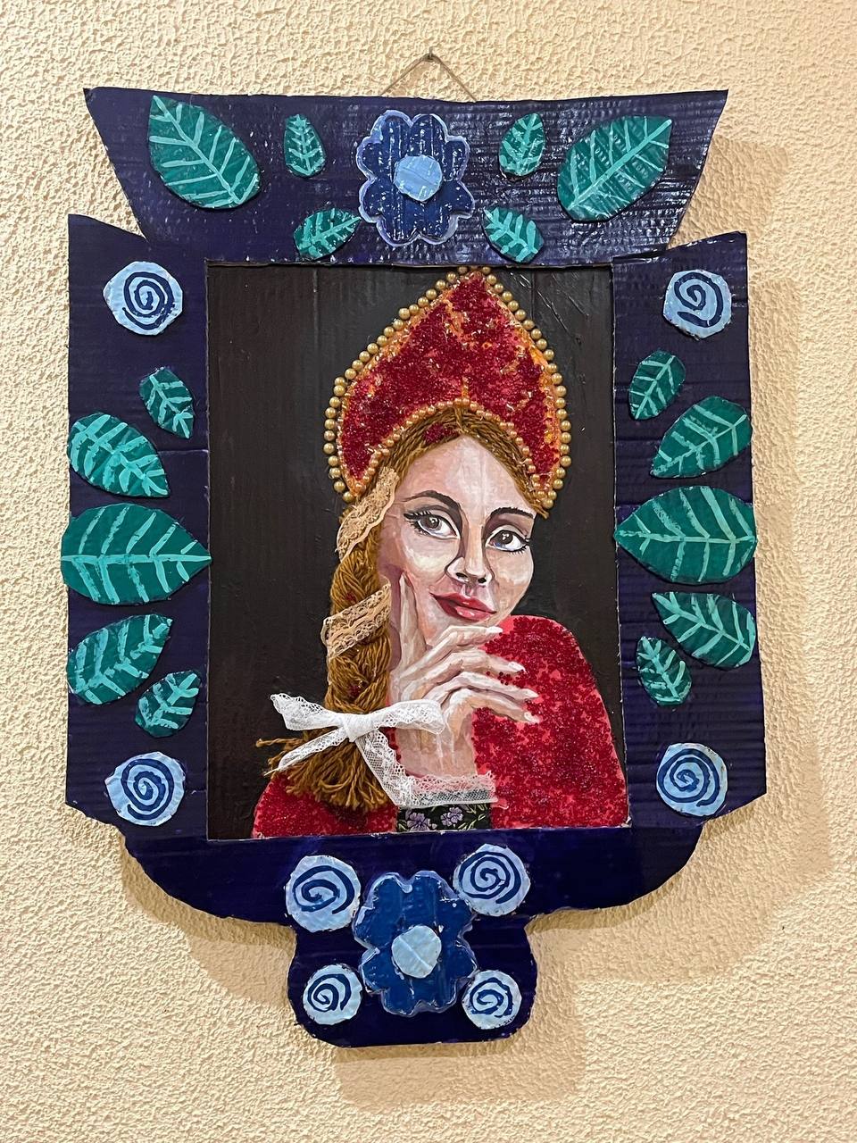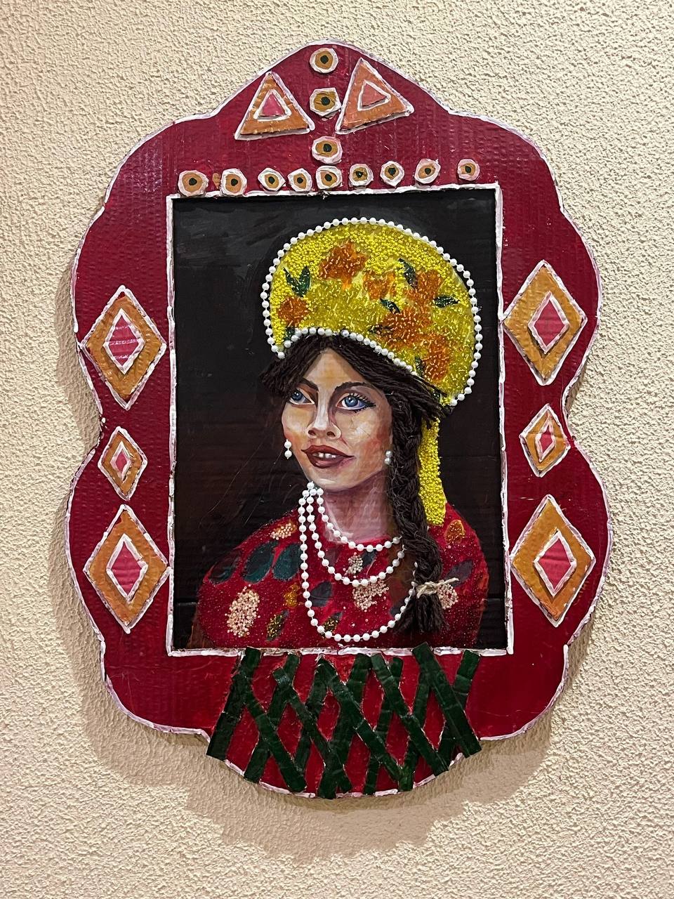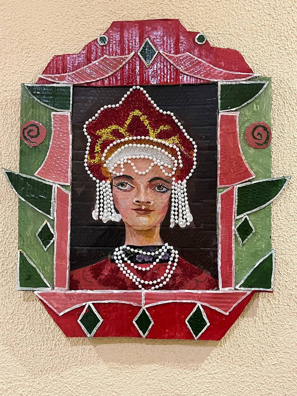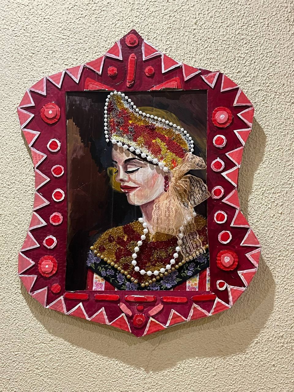 Завершающим штрихом стали декоративные элементы — блестящие бисеринки и изящные бусины, которые добавили композициям яркости и завершённости. Каждая деталь подчеркивает красоту русской девушки, словно открывающейся зрителю сквозь оконный переплет.