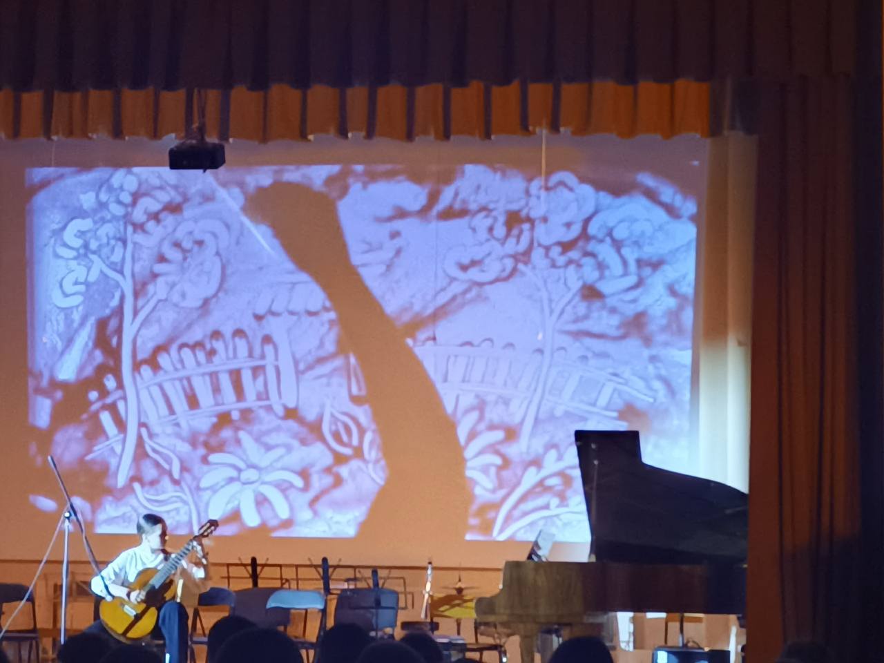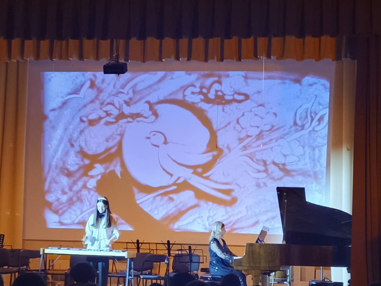 Украшением концерта стала песочная анимация, выполненная преподавателем Надеждой Петровной Семиохиной.