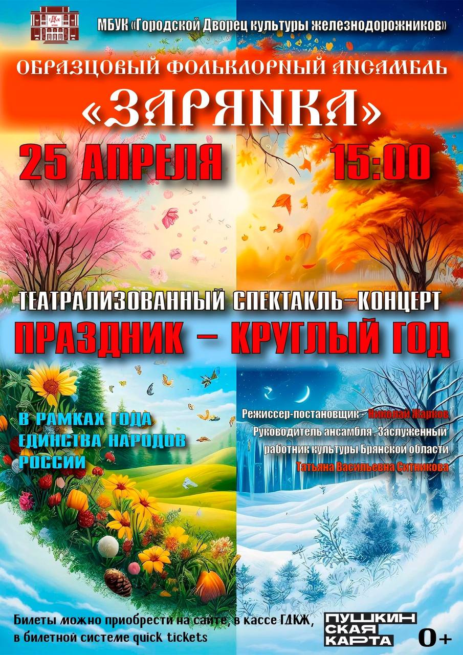 25 АПРЕЛЯ в 15.00 состоится концерт «Круглый год» Образцового фольклорного ансамбля «Зарянка».