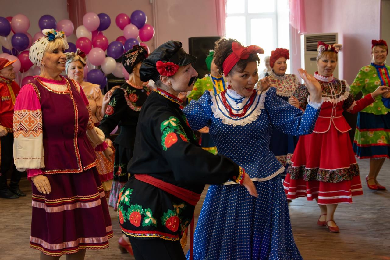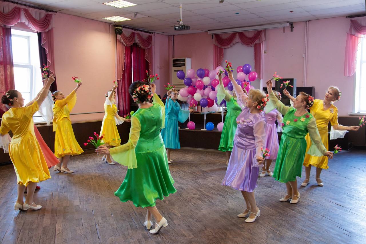 Участники клуба с удовольствием приняли участие в интеллектуальных викторинах, посвященных цветам и женщинам, демонстрируя свои знания и смекалку. А затем все вместе, под зажигательную музыку, станцевали общий танец «Плясовая» вместе с коллективом «Стимул», зарядившись позитивной энергией.