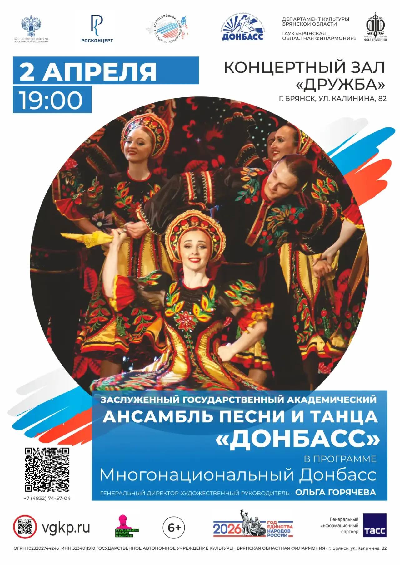 2 апреля в 19.00 на сцене к/з «Дружба» Заслуженный государственный академический ансамбль песни и танца «Донбасс» представит программу «Многонациональный Донбасс».