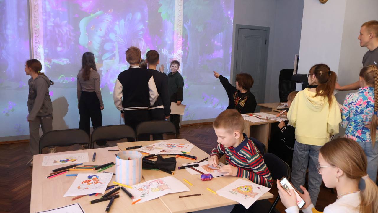 Первыми её участниками стали учащиеся начальных классов МБОУ "СОШ № 4 г. Брянска" – для них открылась «Сказочная студия художника»: увлекательная творческая мастерская, где оживают герои любимых произведений. Ребята отправились в настоящее художественное путешествие. Сначала они познакомились с разными видами живописи: учились различать стили и угадывать их по иллюстрациям к сказкам. Юные читатели с интересом обсуждали, как с помощью цвета и формы художники передают характер персонажей и атмосферу волшебных миров. Затем пришло время творчества: школьники раскрашивали сказочных героев, внося в знакомые образы свои идеи и фантазии. Кульминацией встречи стало посещение «Волшебного леса». Здесь произошло настоящее чудо: рисунки ребят оживали прямо на стене – благодаря современным мультимедийным технологиям изображения словно шагнули из бумаги в реальность.