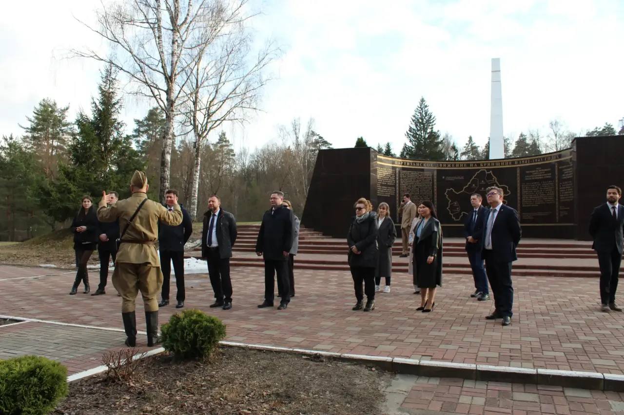 После этого в сопровождении двух экскурсоводов участники мероприятия познакомились с главными памятниками мемориала, узнали о том, как вели свою решительную борьбу патриоты в густых брянских лесах, услышали рассказ о подвигах партизан-героев – М.И. Дуки, М.П. Ромашина, Д.Н. Медведева, познакомились с нелегким бытом народных мстителей, посетив землянку для отдыха партизан.