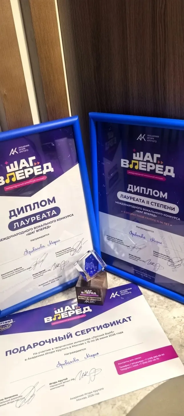 Солистка фольклорной студии «Семеюшка» Мария Привалова стала Лауреатом II степени престижного Международного конкурса «Шаг вперед» Академии Игоря Крутого. Среди 200 талантливых конкурсантов Мария вошла в число 68 финалистов, после чего вошла 8- ку лучших и заслуженно одержала победу.