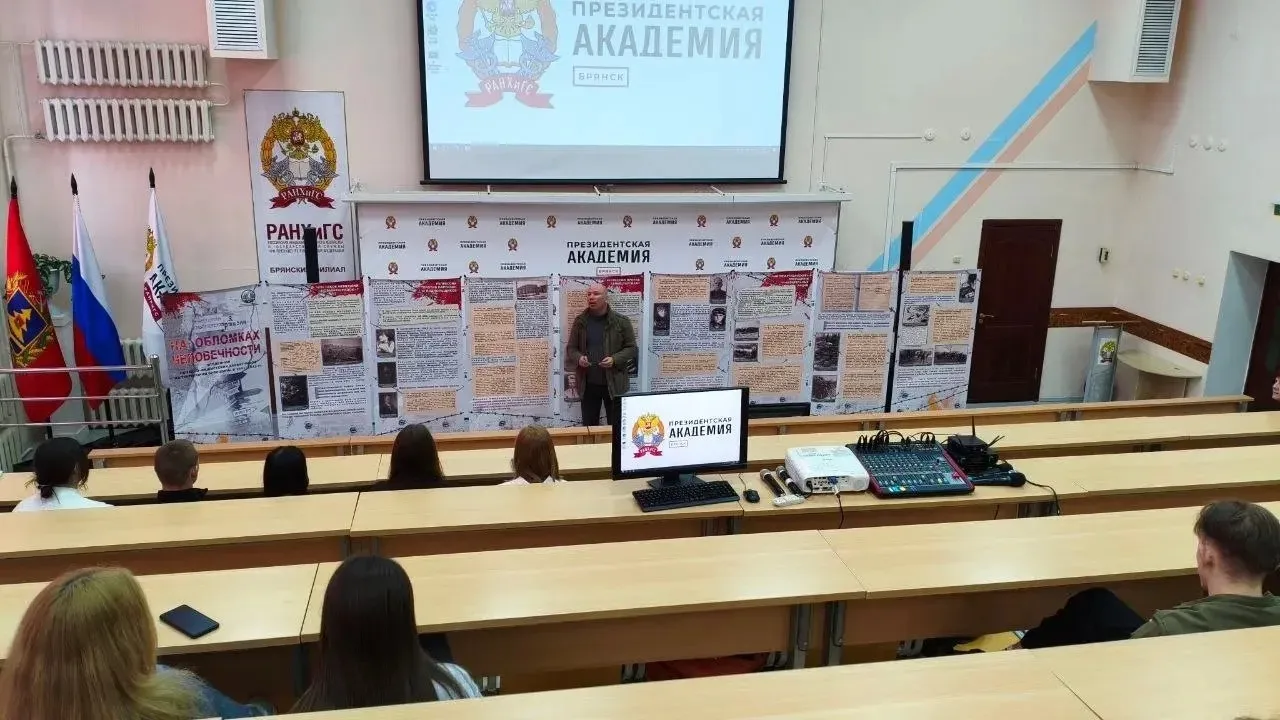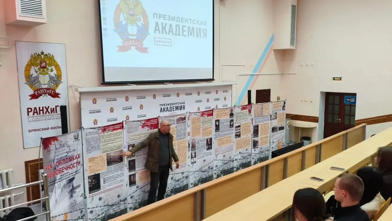 20 апреля сотрудники Партизанской поляны познакомили студентов Брянского государственного аграрного университета и Брянского филиала РАНХиГС с выставкой «На обломках человечности», рассказывающей о злодеяниях немецко-фашистских захватчиков на территории Брянщины в 1941–1943 гг.