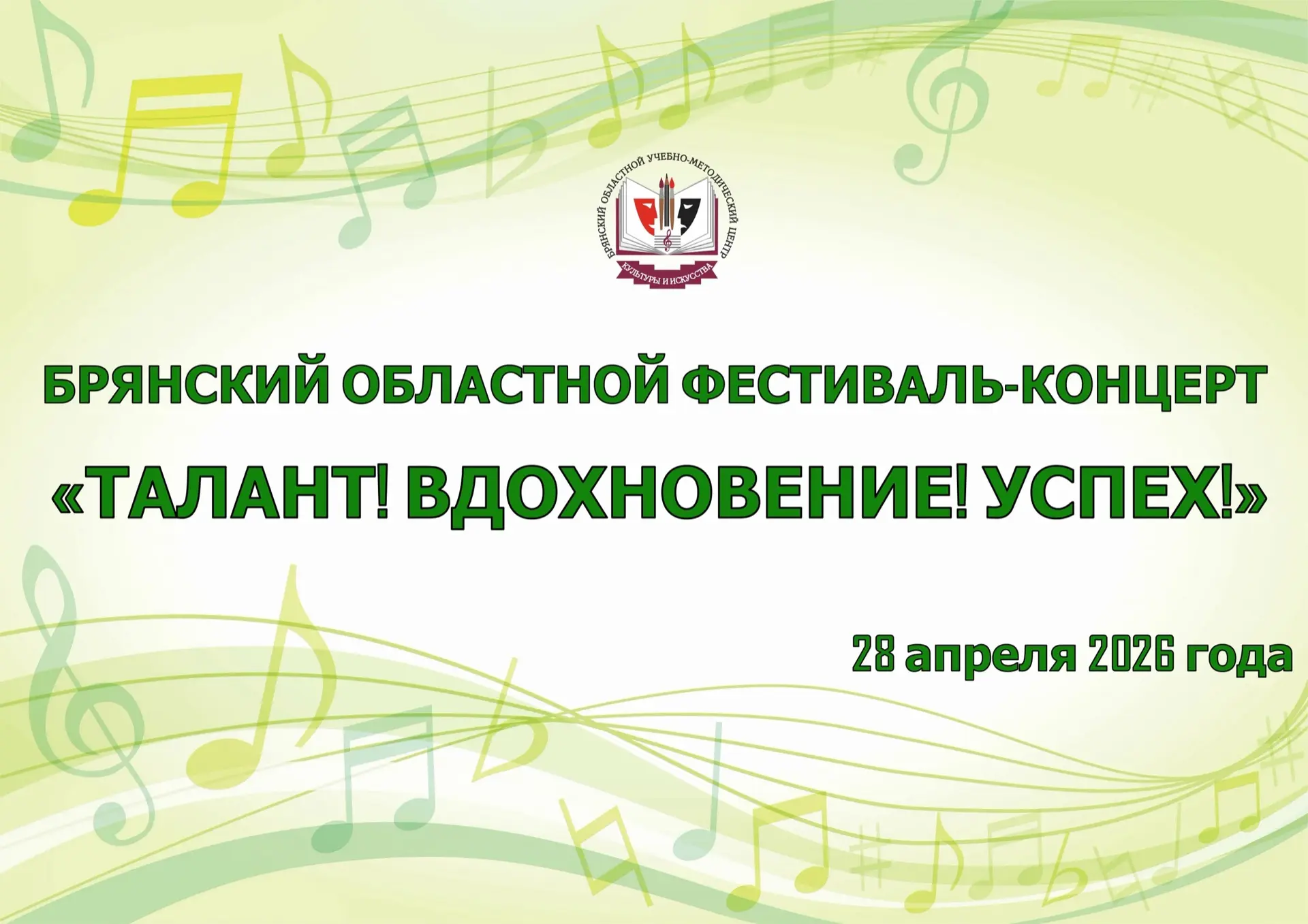 28 АПРЕЛЯ 2026 ГОДА В 14.00 СОСТОИТСЯ БРЯНСКИЙ ОБЛАСТНОЙ ФЕСТИВАЛЬ-КОНЦЕРТ «ТАЛАНТ! ВДОХНОВЕНИЕ! УСПЕХ!».
