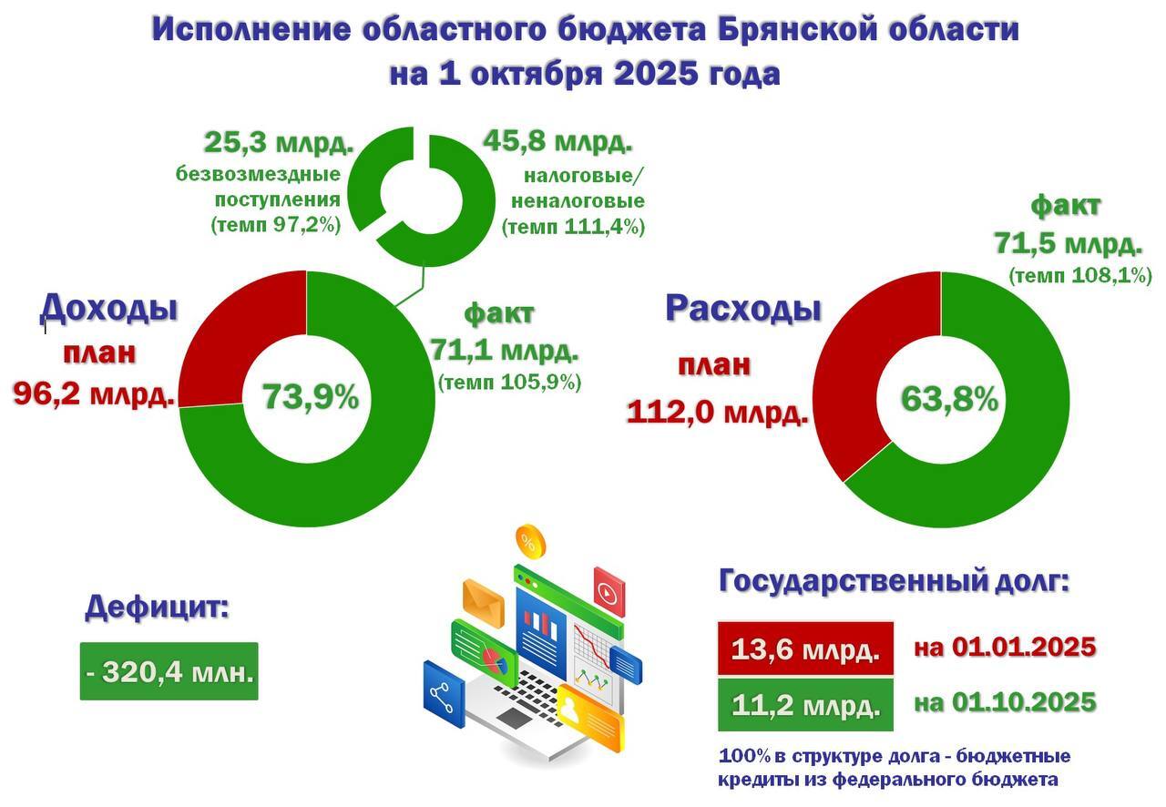 По состоянию на 1 октября 2025 года областной бюджет исполнен с дефицитом в сумме 320,4 млн. рублей.