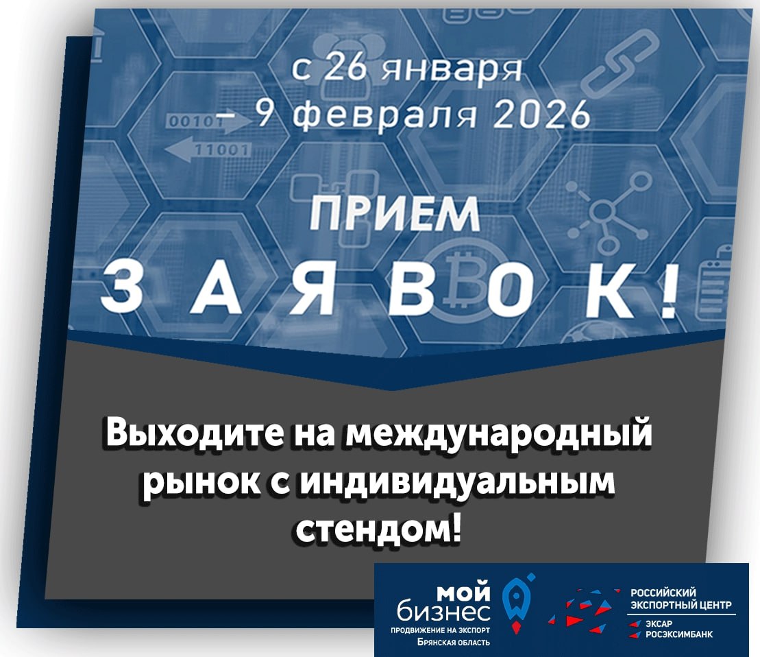 Старт приёма заявок!. Центр поддержки экспорта Брянской области приглашает региональный бизнес к участию в международных выставках с индивидуальным стендом! Что вас ждёт: