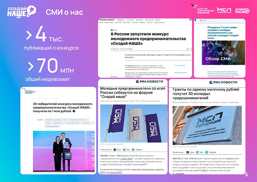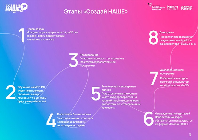 Финал: имена победителей назовут в мае на Форуме молодых предпринимателей «Создай НАШЕ» в Москве.