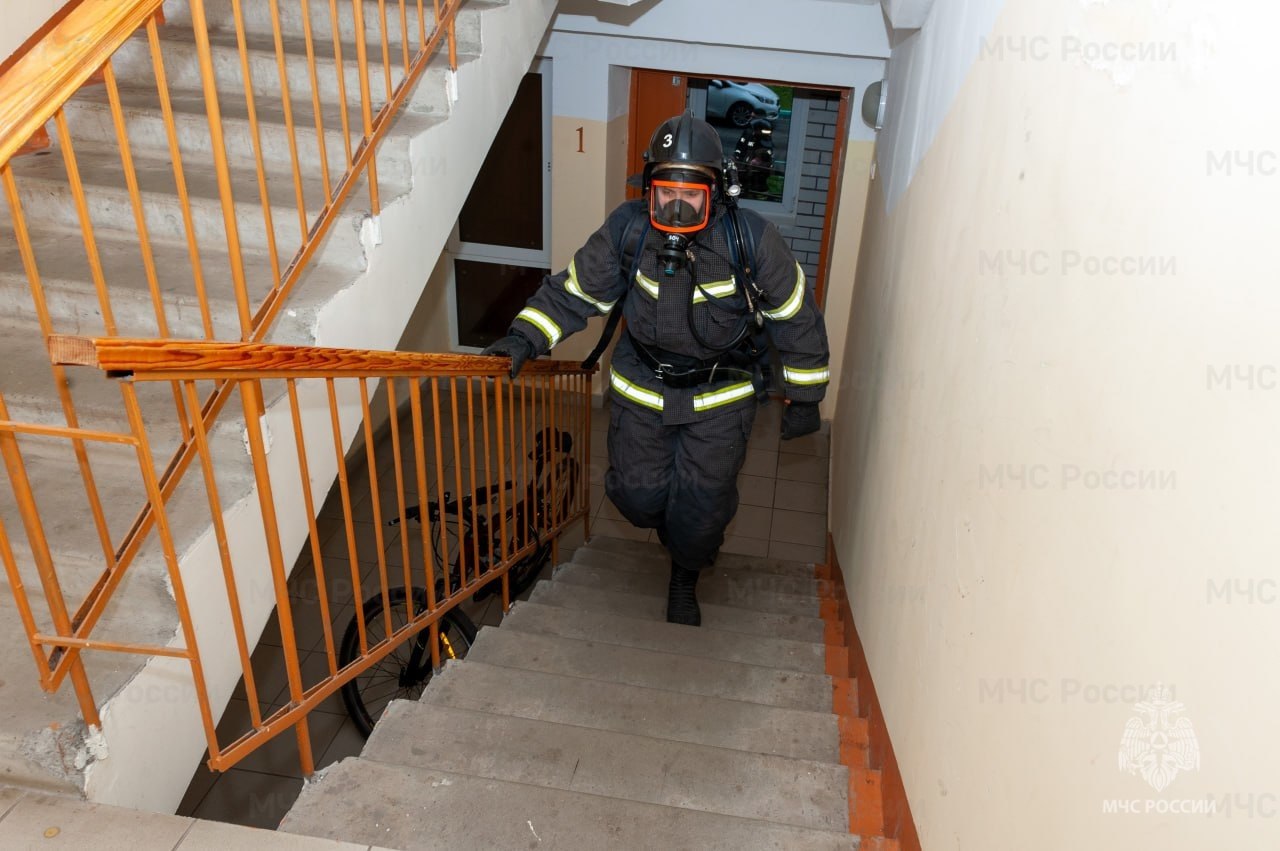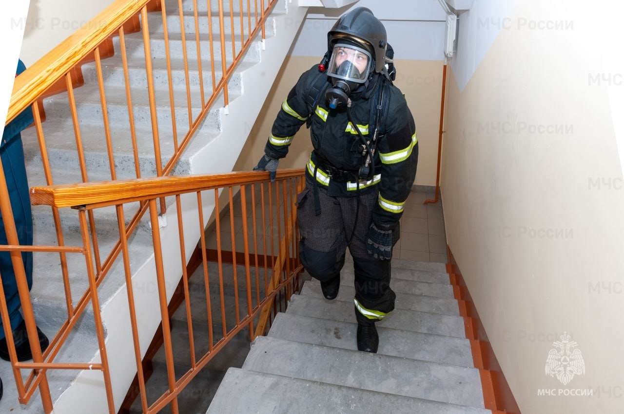 22 огнеборца испытали свои возможности скорости и выносливости в рамках соревнования «Вертикальный вызов». Они поднимались на скорость на 18 этаж многоквартирного дома в полной боевой экипировке с включенными дыхательными аппаратами.