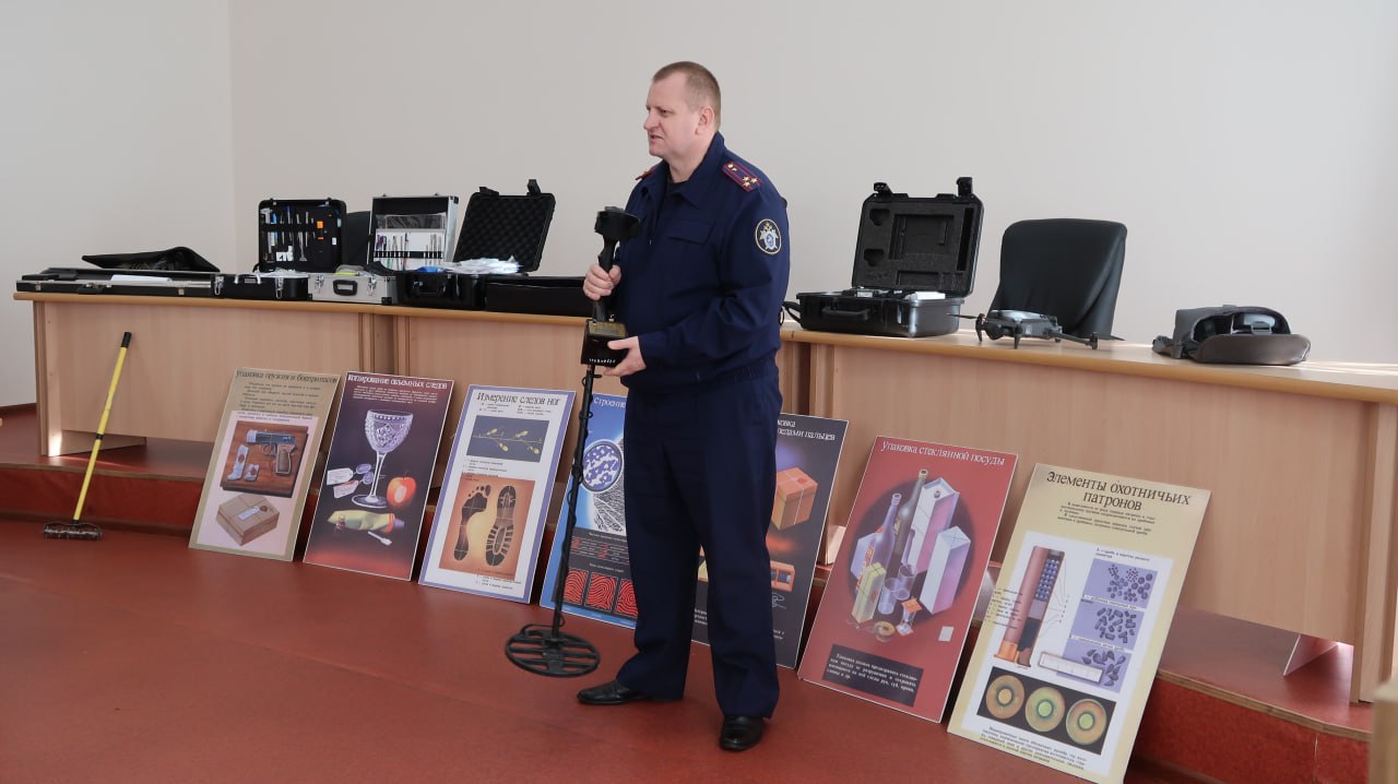 Руководитель отдела криминалистики Сергей Ильев рассказал ребятам о важности работы криминалистической службы при раскрытии и расследовании преступлений, старший следователь-криминалист отдела Сергей Калитко показал присутствующим школьникам криминалистическую технику, используемую в следственной работе, старший специалист Александр Виноградов приоткрыл для учащихся тайну появления и развития средств определения лжи, а также сообщил о своей работе с полиграфом, называемым в обществе «детектором лжи».