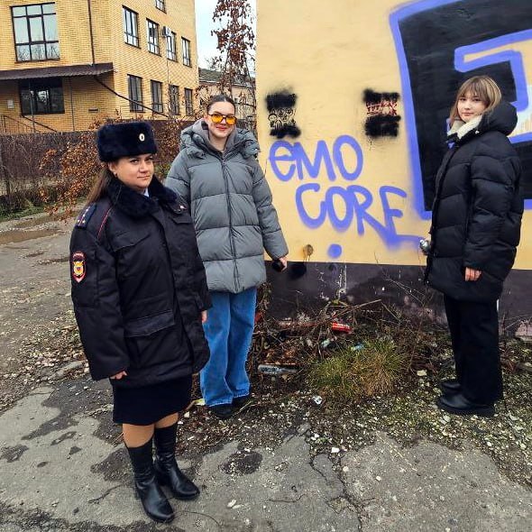 В Брянске полицейские и волонтеры провели рейд по закрашиванию граффити на жилых домах и иных строениях