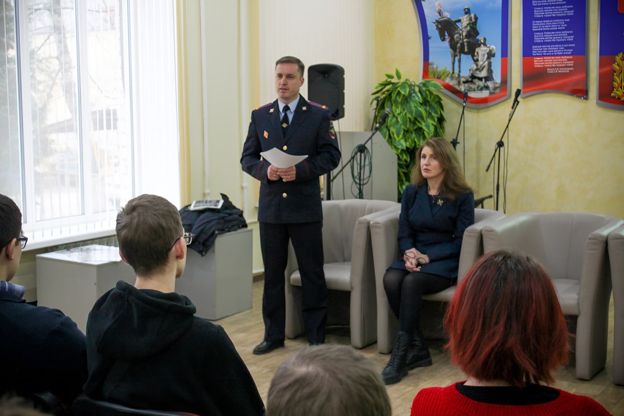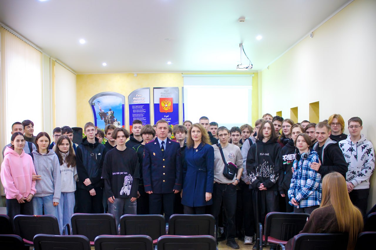 С учащимися Брянского строительного колледжа им. профессора Н.Е. Жуковского встретились заместитель начальника оперативно-сыскного отдела уголовного розыска УМВД России по г. Брянску Сергей Беда, инспектор по делам несовершеннолетних Анастасия Семендяева, а также представитель регионального отделения Банка России.