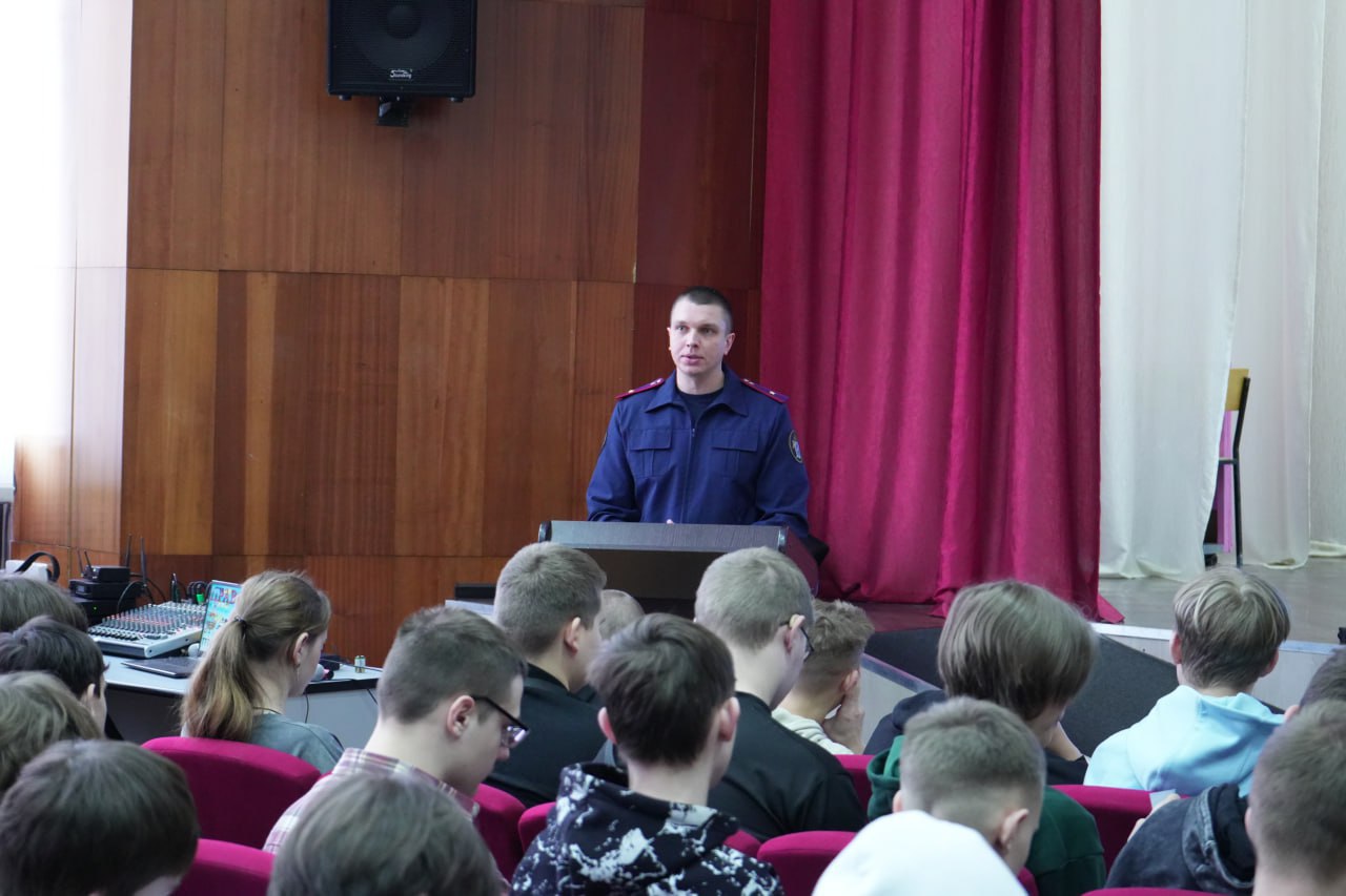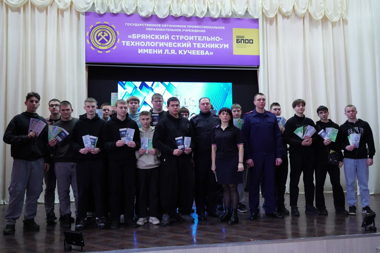 Заместитель руководителя Бежицкого межрайонного следственного отдела города Брянска Павел Говоров совместно с сотрудниками полиции принял участие в профилактическом занятии со студентами Брянского строительно-технологического техникума имени Л.Я. Кучеева.