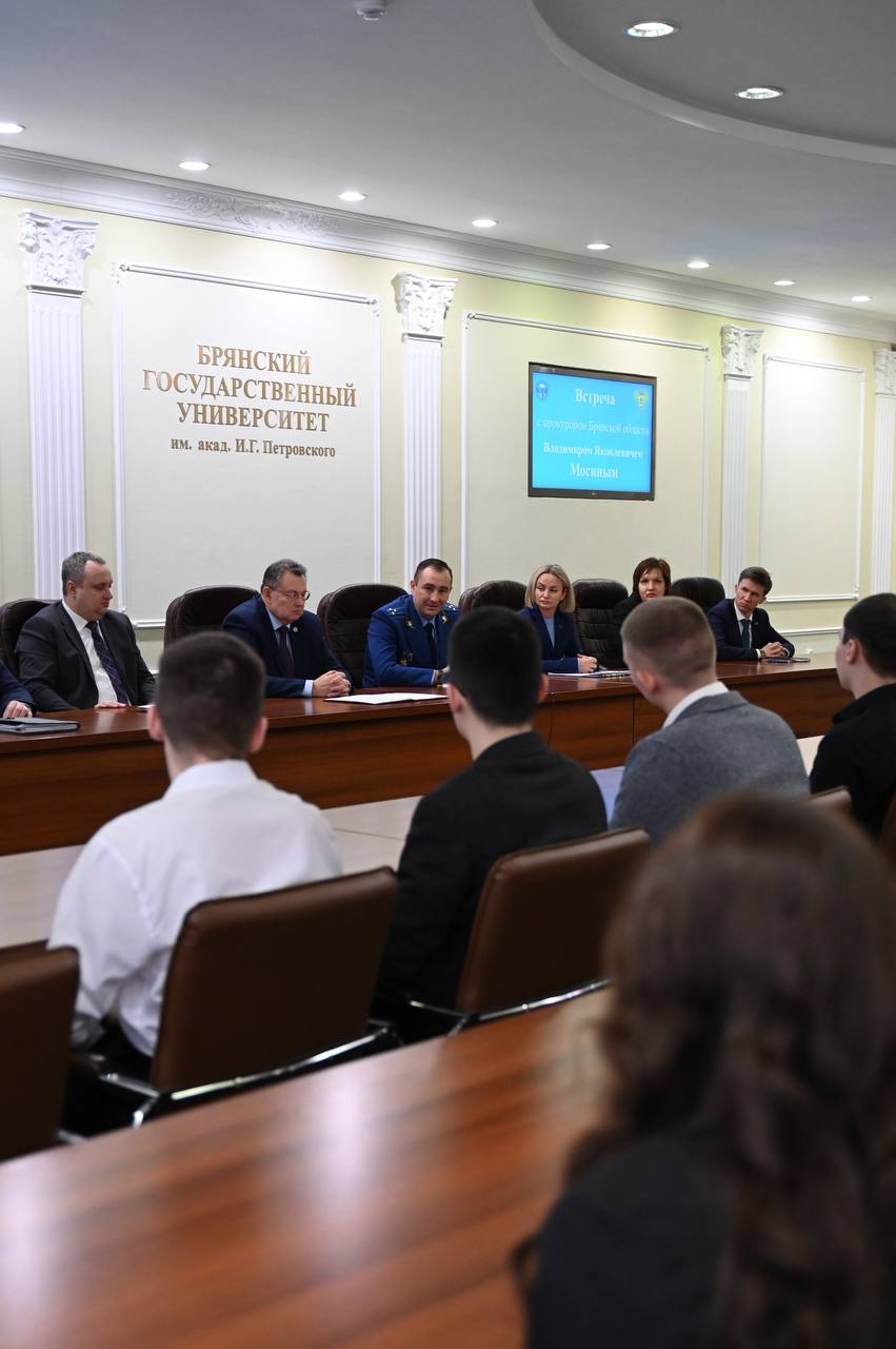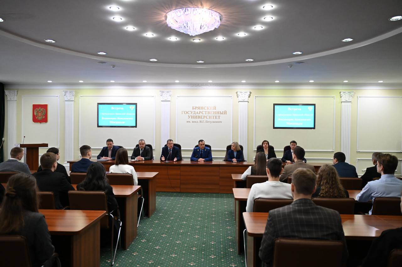 23 января 2026 года в Брянском государственном университете имени академика И.Г. Петровского состоялась первая встреча студентов-юристов с прокурором Брянской области Владимиром Мосиным.