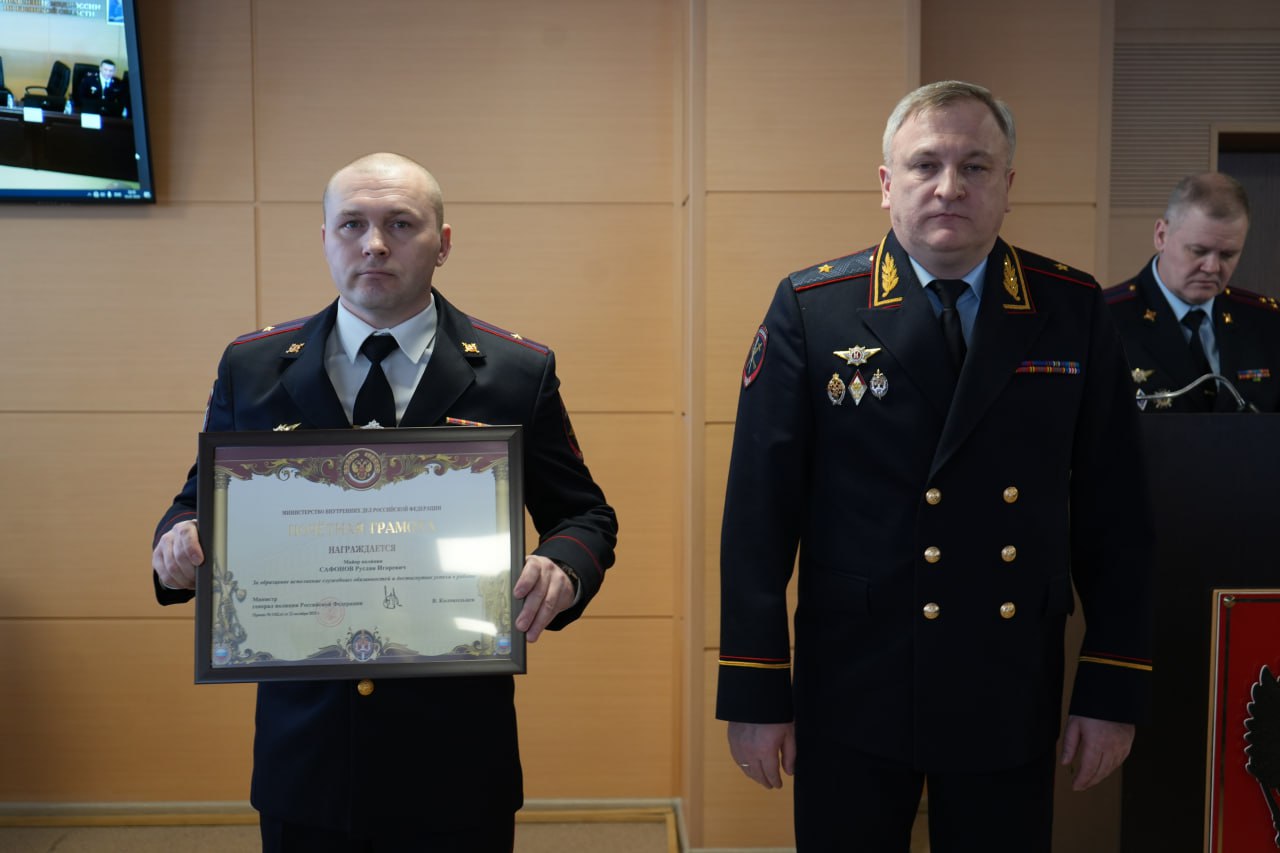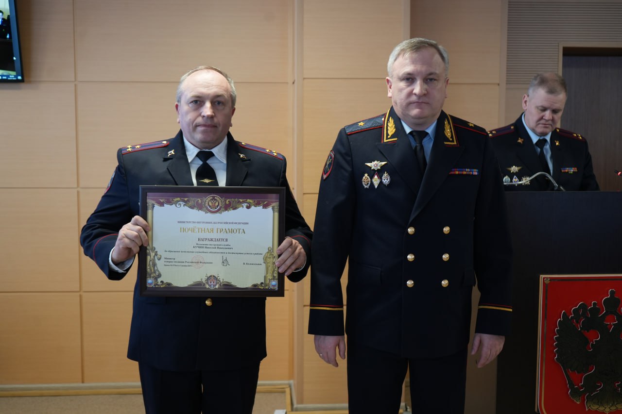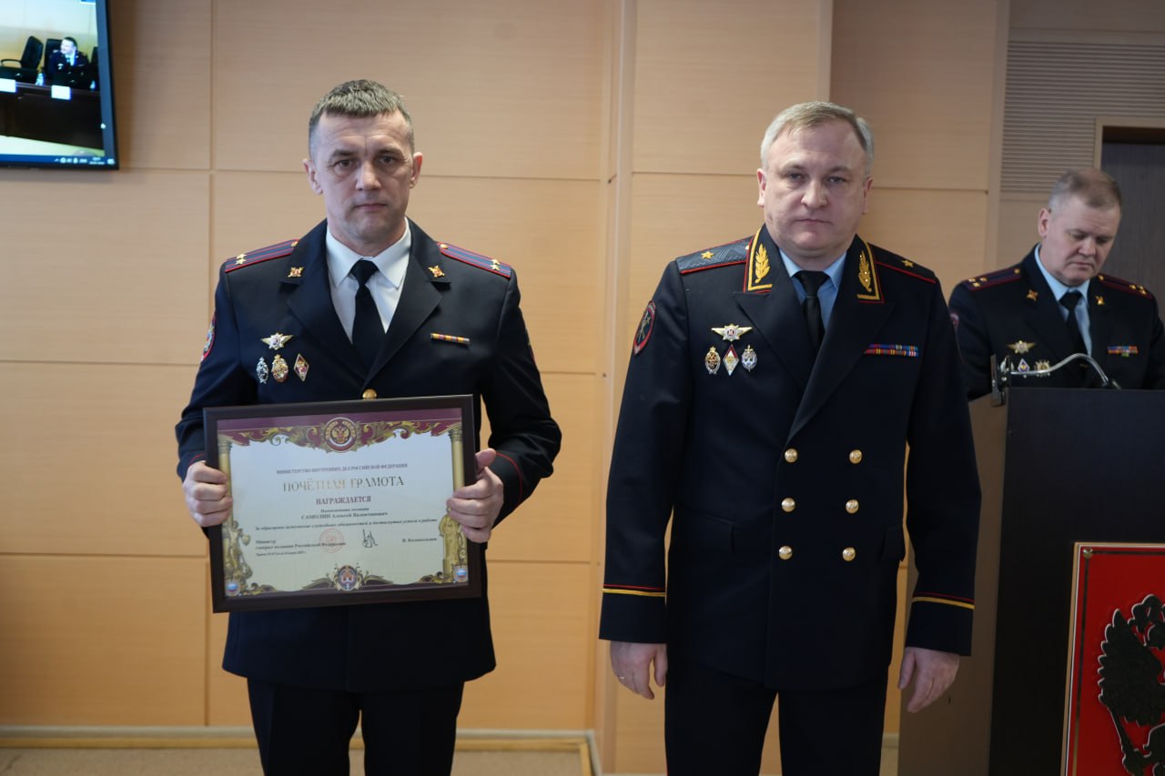 Затем состоялась торжественная церемония награждения. За достигнутые высокие показатели в служебной деятельности и в связи с празднованием Дня защитника Отечества ряду сотрудников органов внутренних дел вручены заслуженные награды.