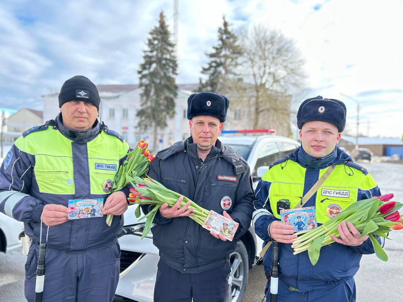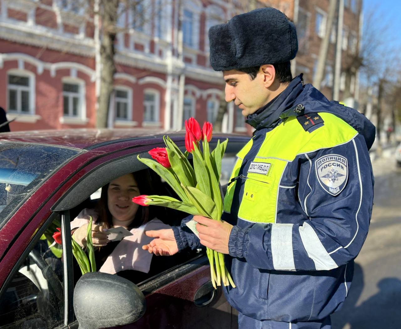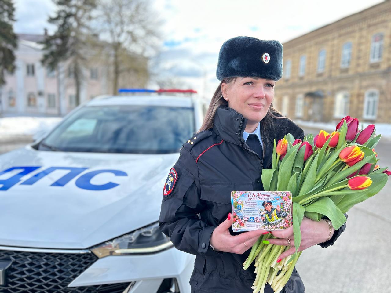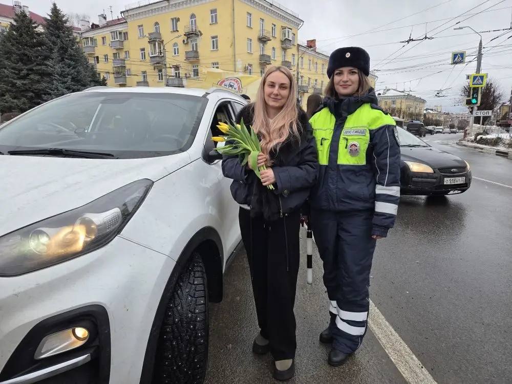 В честь 8 Марта сотрудники Госавтоинспекции провели праздничную акцию во всех уголках региона. Инспекторы останавливали автомобили, за рулём которых находились женщины, чтобы поздравить их с праздником.