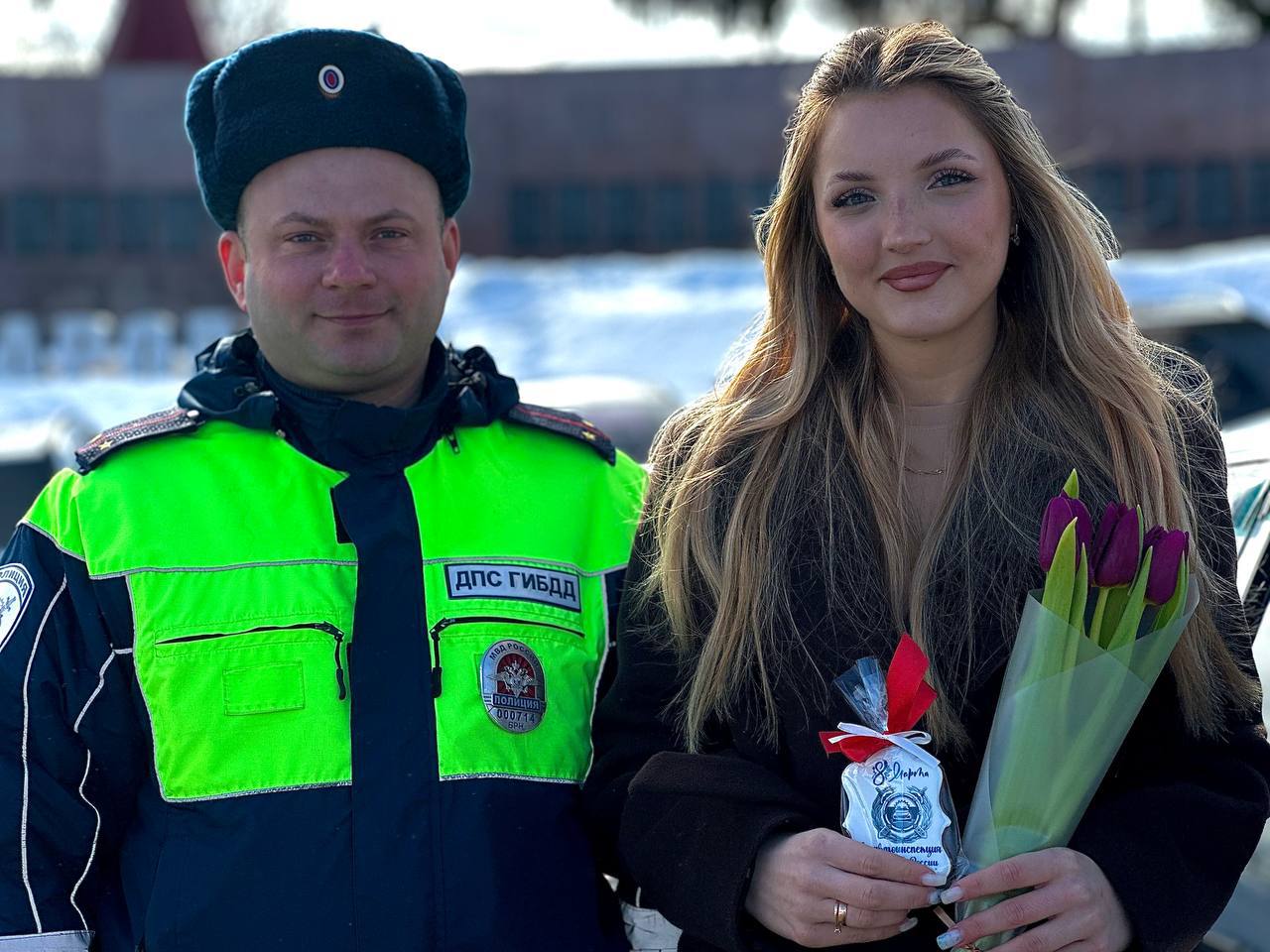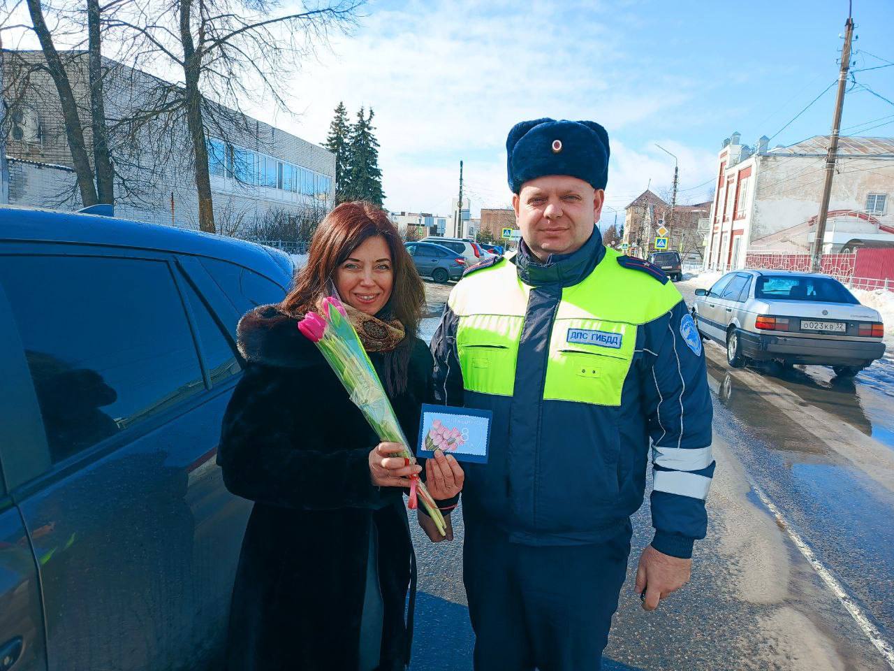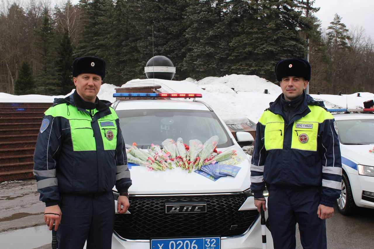 Сотрудники Госавтоинспекции Брянской области поздравили автоледи с Международным женским днём.