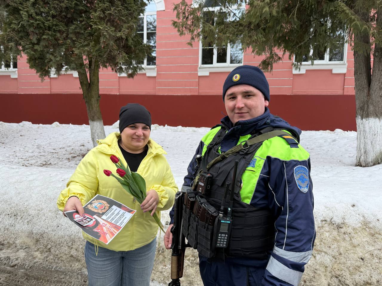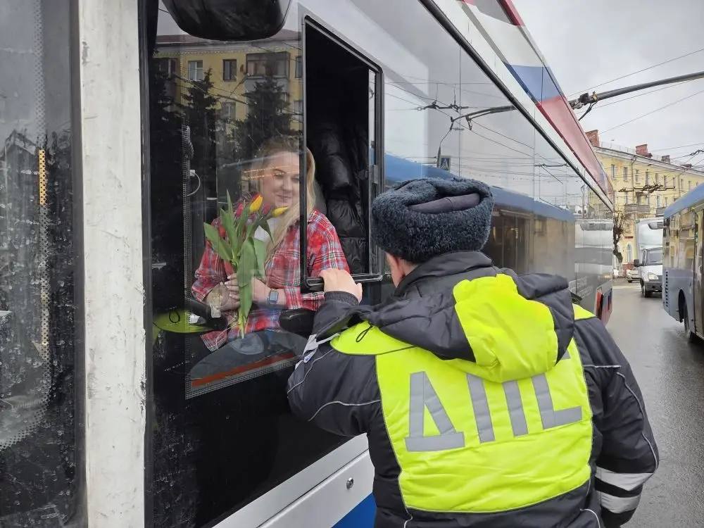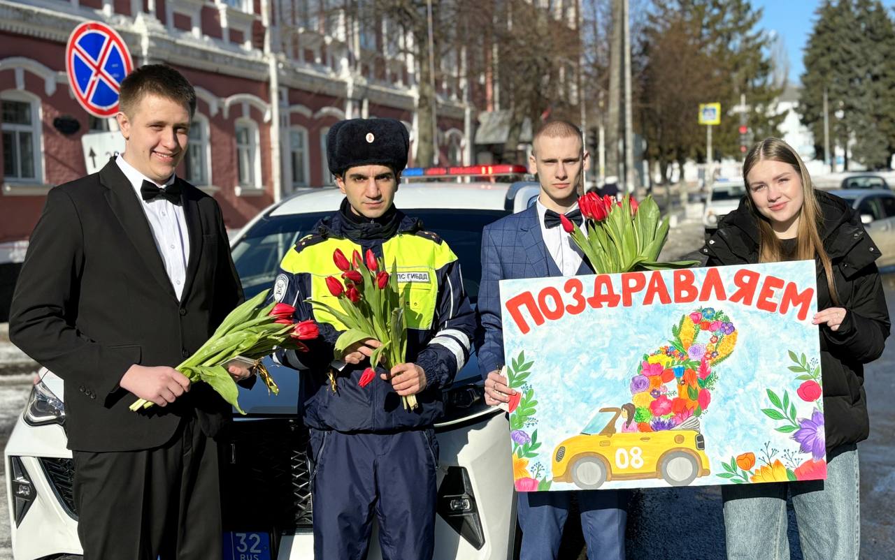 Сотрудники Госавтоинспекции Брянской области поздравили автоледи с Международным женским днём.